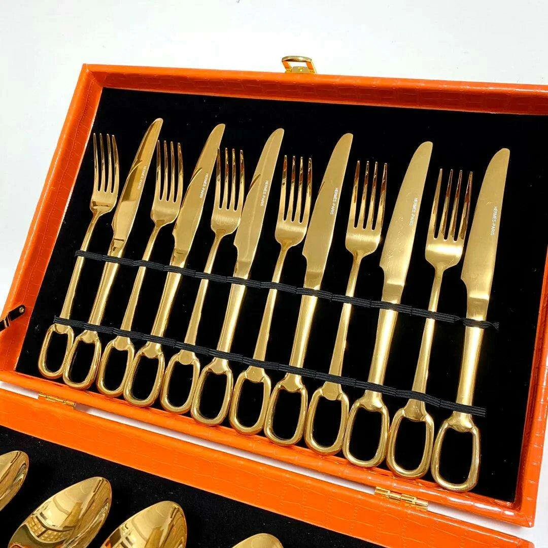 Ensemble de salle à manger exquis de 24 pièces en acier inoxydable