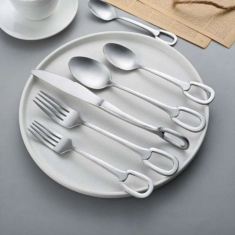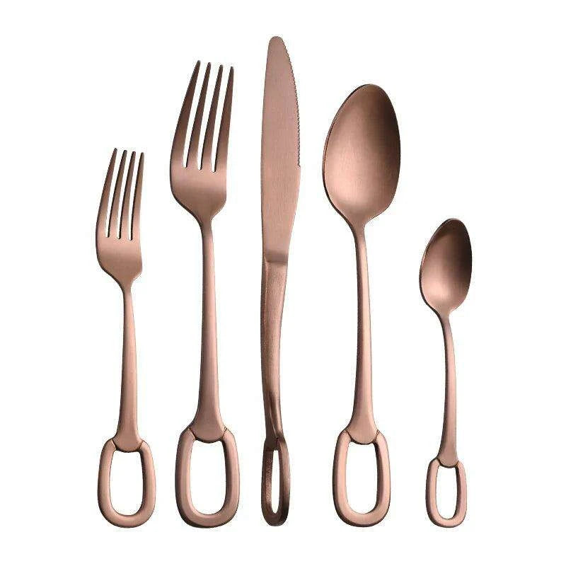 Elegant 5-Piece Stainless Steel Cutlery Set with Stylish Hanging Handles for a Luxurious Dining Experience