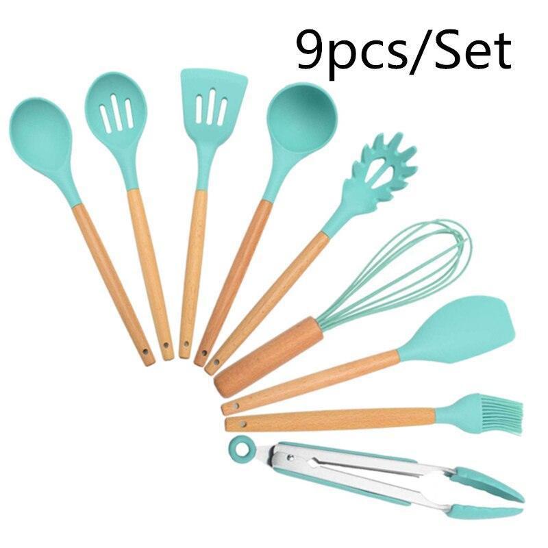 Chic Acacia Wood and Silicone Utensil Set: A Touch of Elegance for Your Culinary Creations