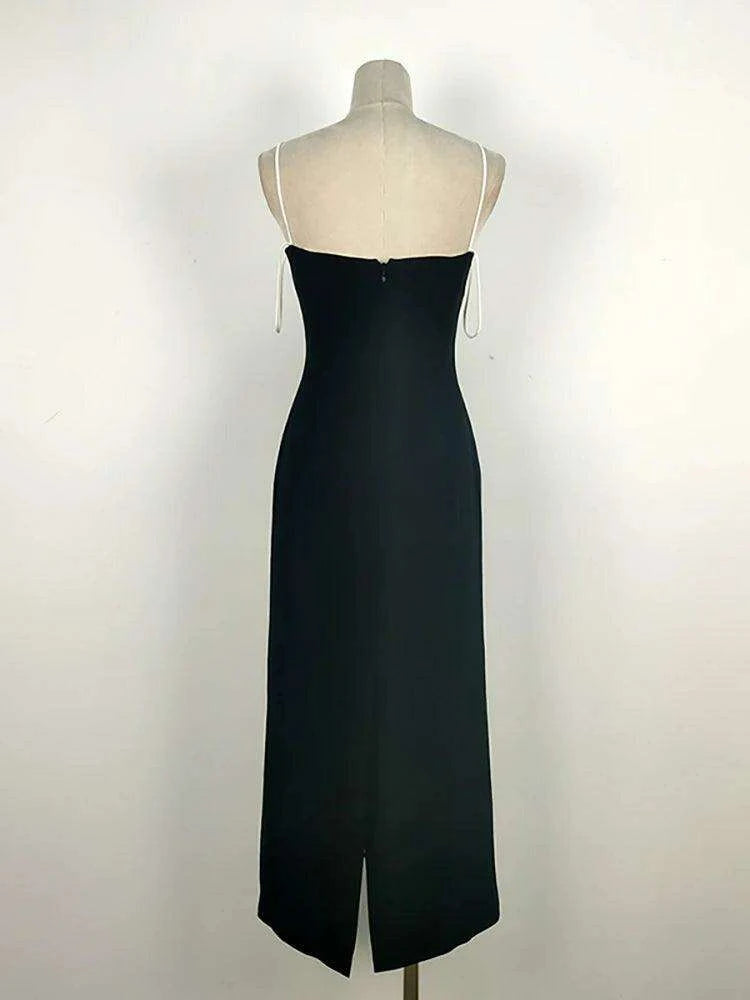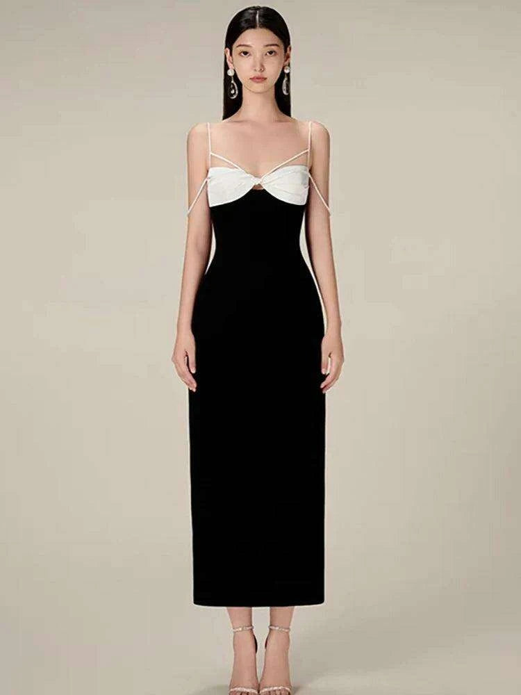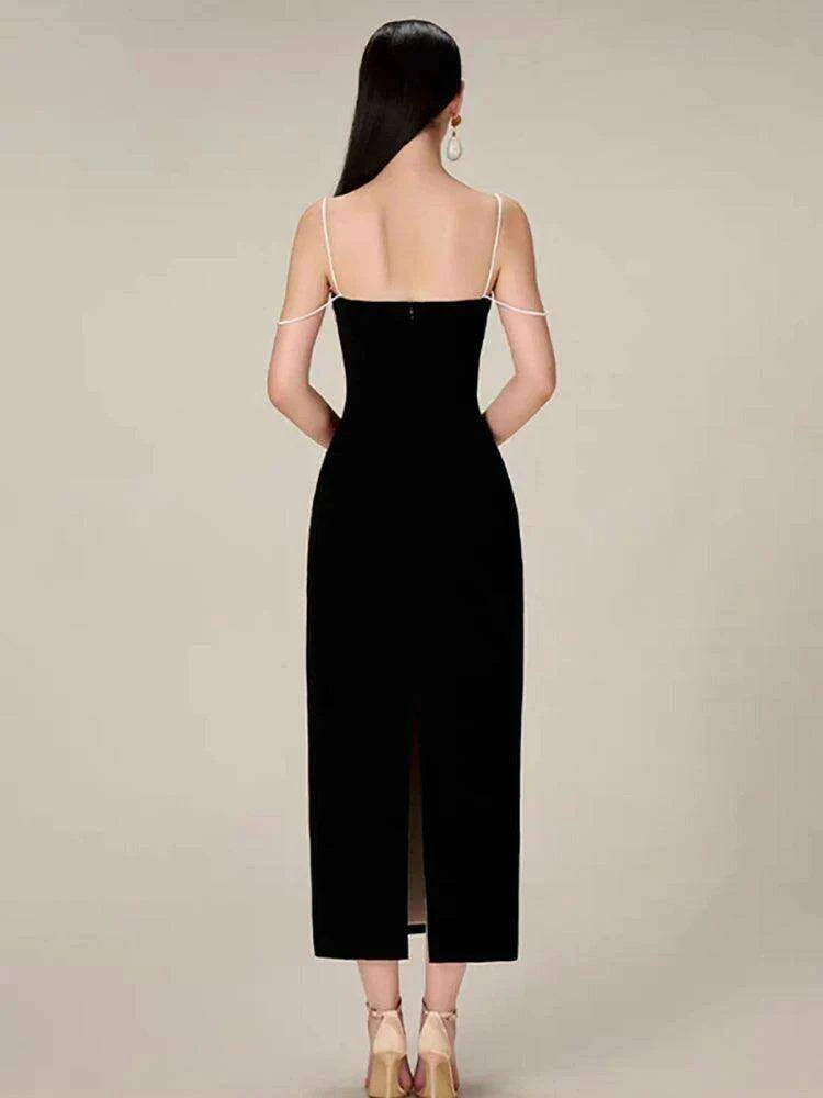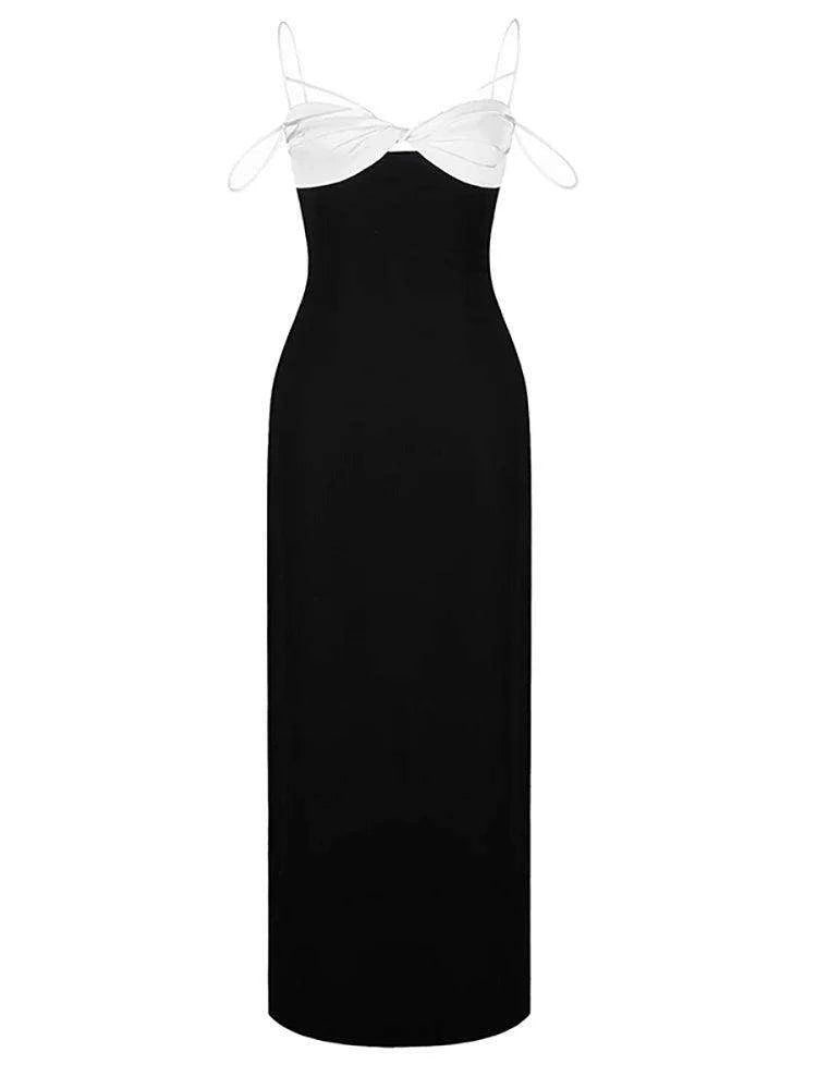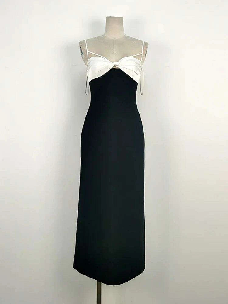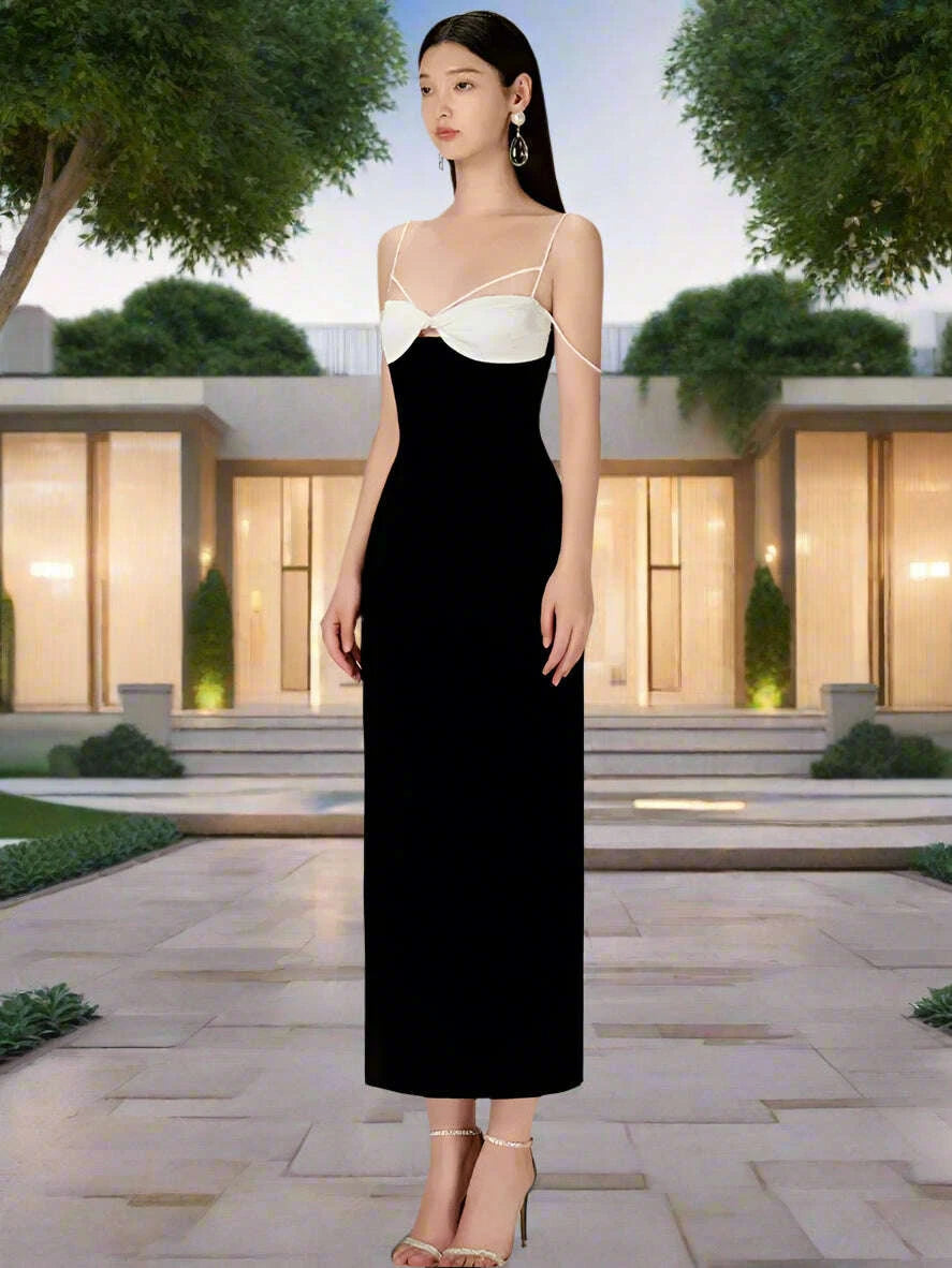 Elegant Backless Color Block Slip Dress with Zipper & Side Slit for Women