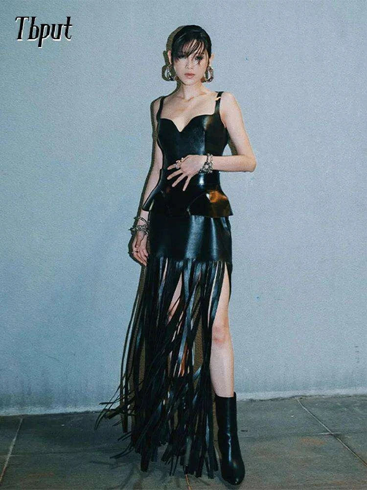 Embrace your chic side and exude confidence in the Black Tassel Patchwork Bodycon Dress. It's not just a dress; it's a statement!