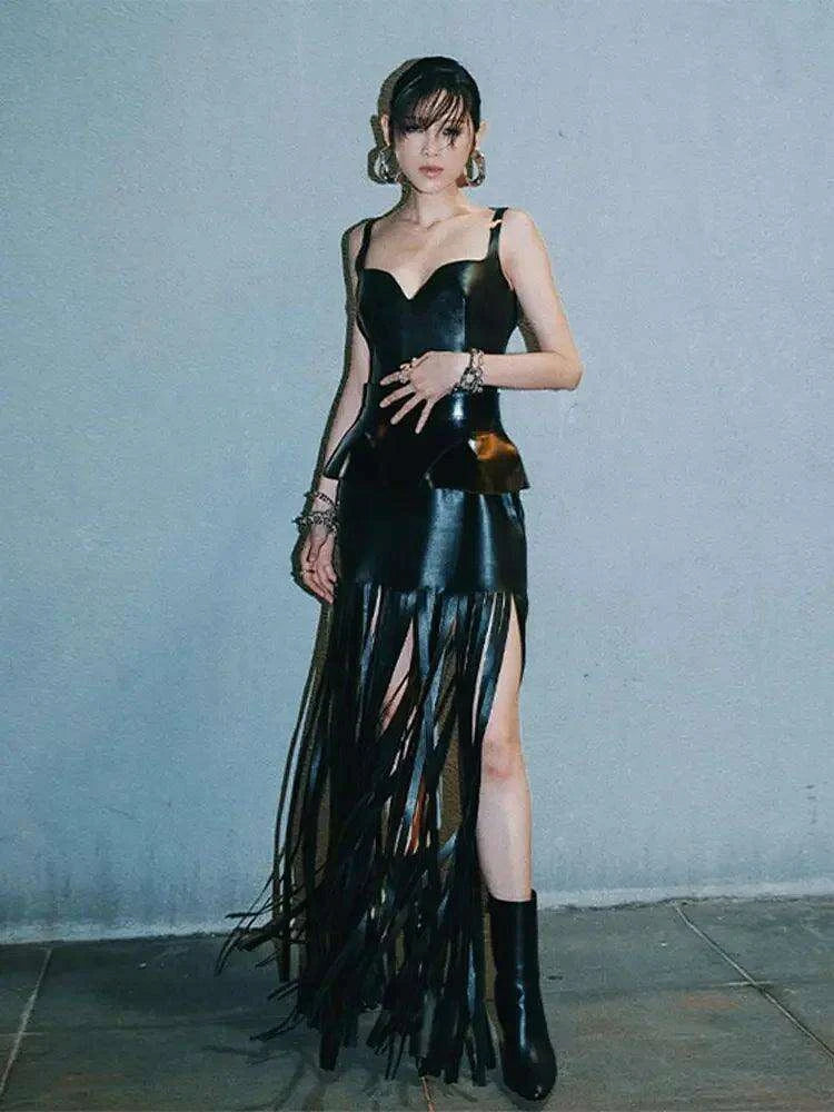 Black Tassel Patchwork Bodycon Dress - Chic Evening Glamour for Women