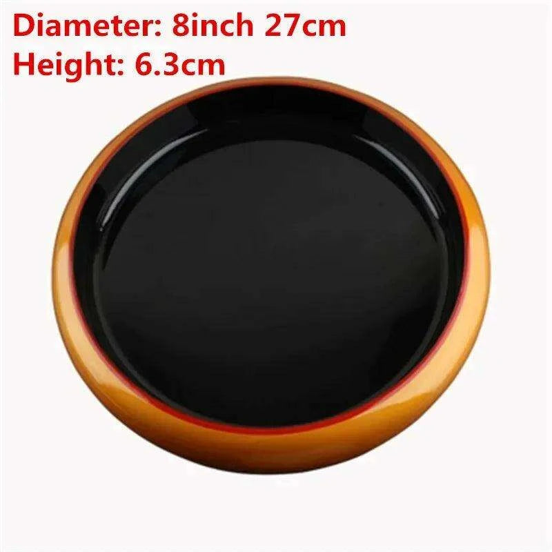 Artisan Floral Elegance Sushi and Sashimi Serving Dish - Black and Gold Design