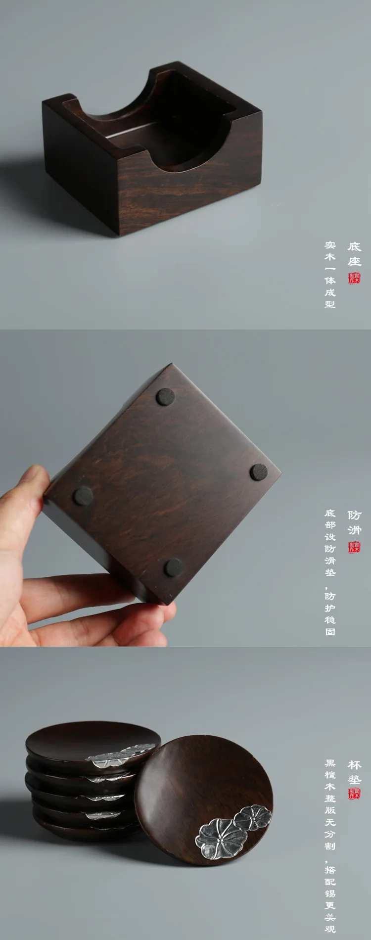 Ensemble d'accessoires à thé ronds et carrés en bois d'ébène, Style chinois créatif, soucoupe plateau en bois, cuisine de Thanksgiving