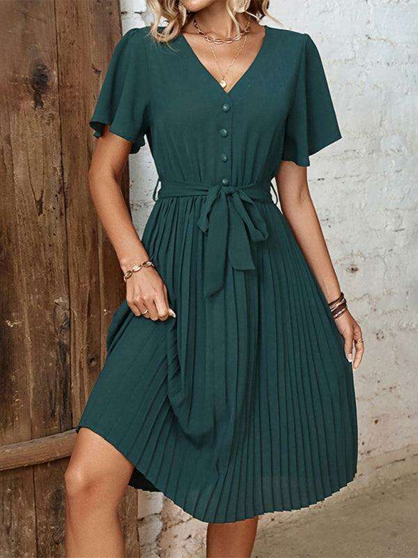 Chic French-Inspired Pleated Dress for Stylish Women