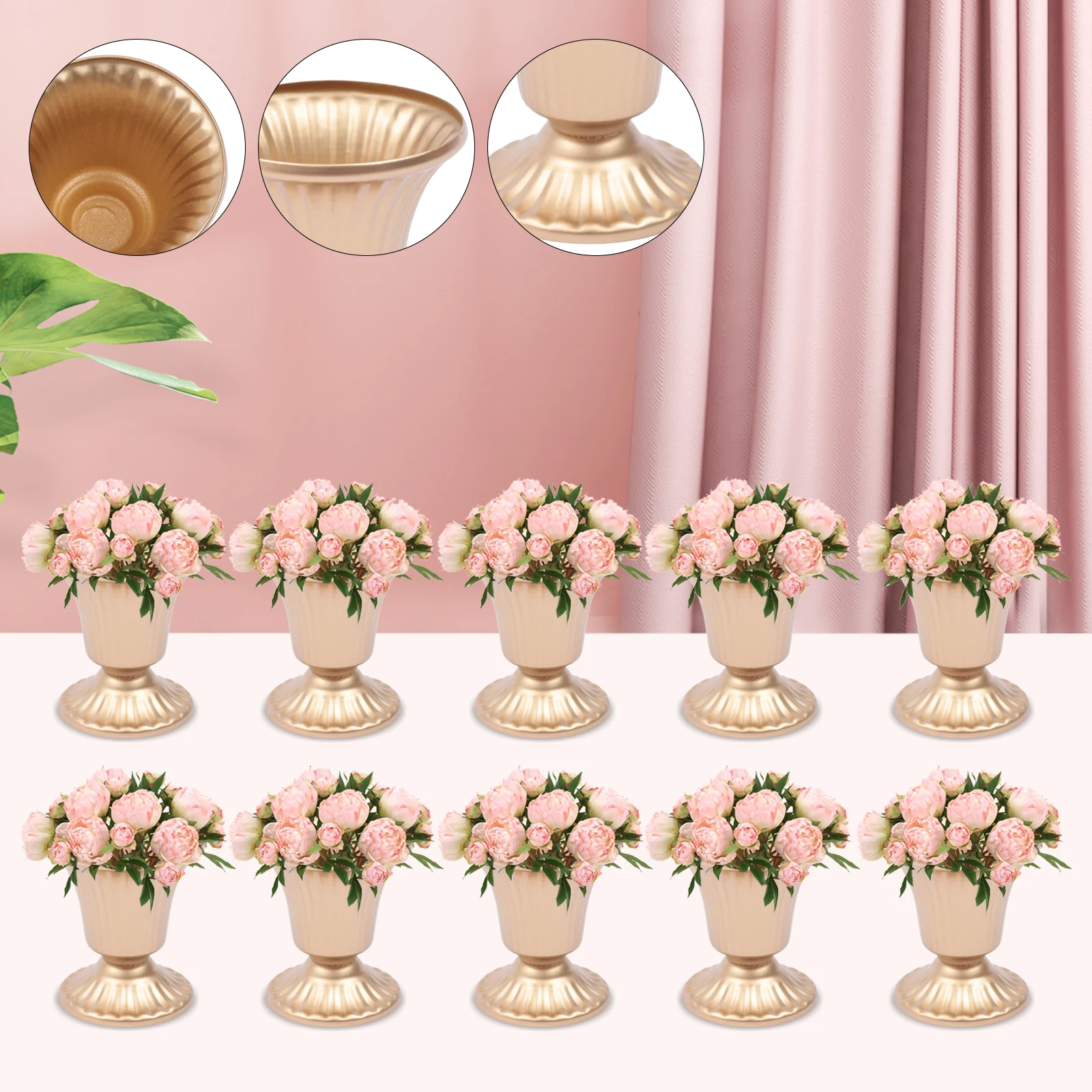 Vases trompettes à fleurs dorées créatives, 10 pièces, support de centres de table pour fête de mariage