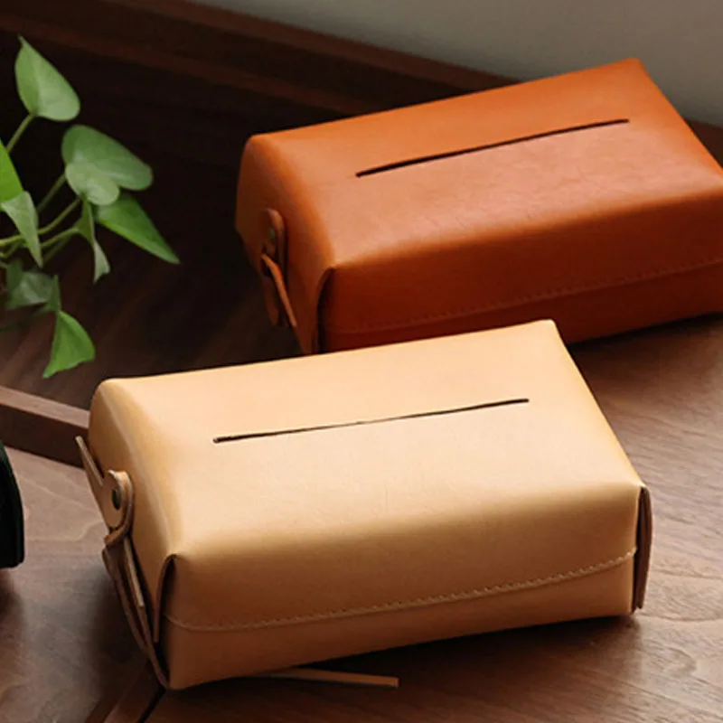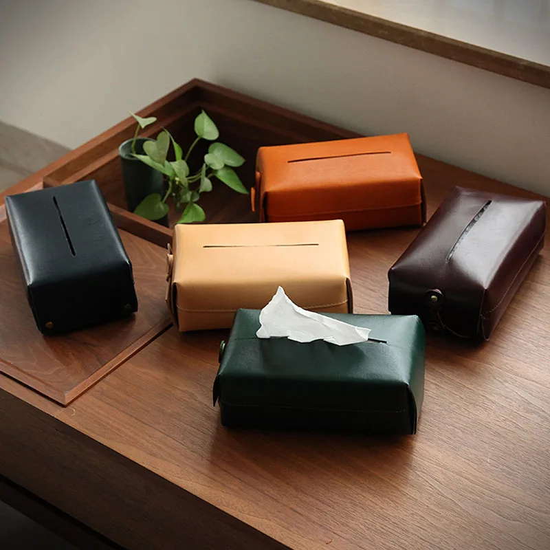 Vintage en cuir véritable voiture tissu support de la boîte à la main de luxe salon bureau hôtel serviette étui papier conteneur organisateur