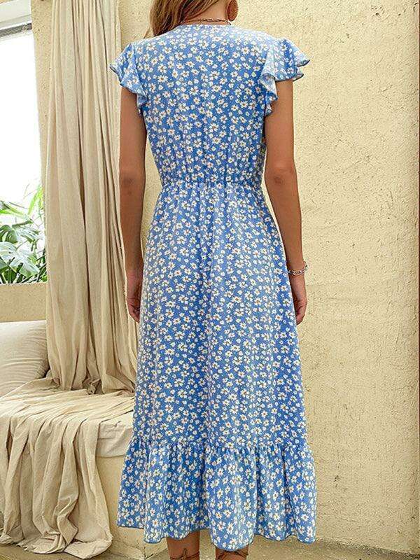 Elegant Irregular Printed Midi Dress for Women with Versatile Styling