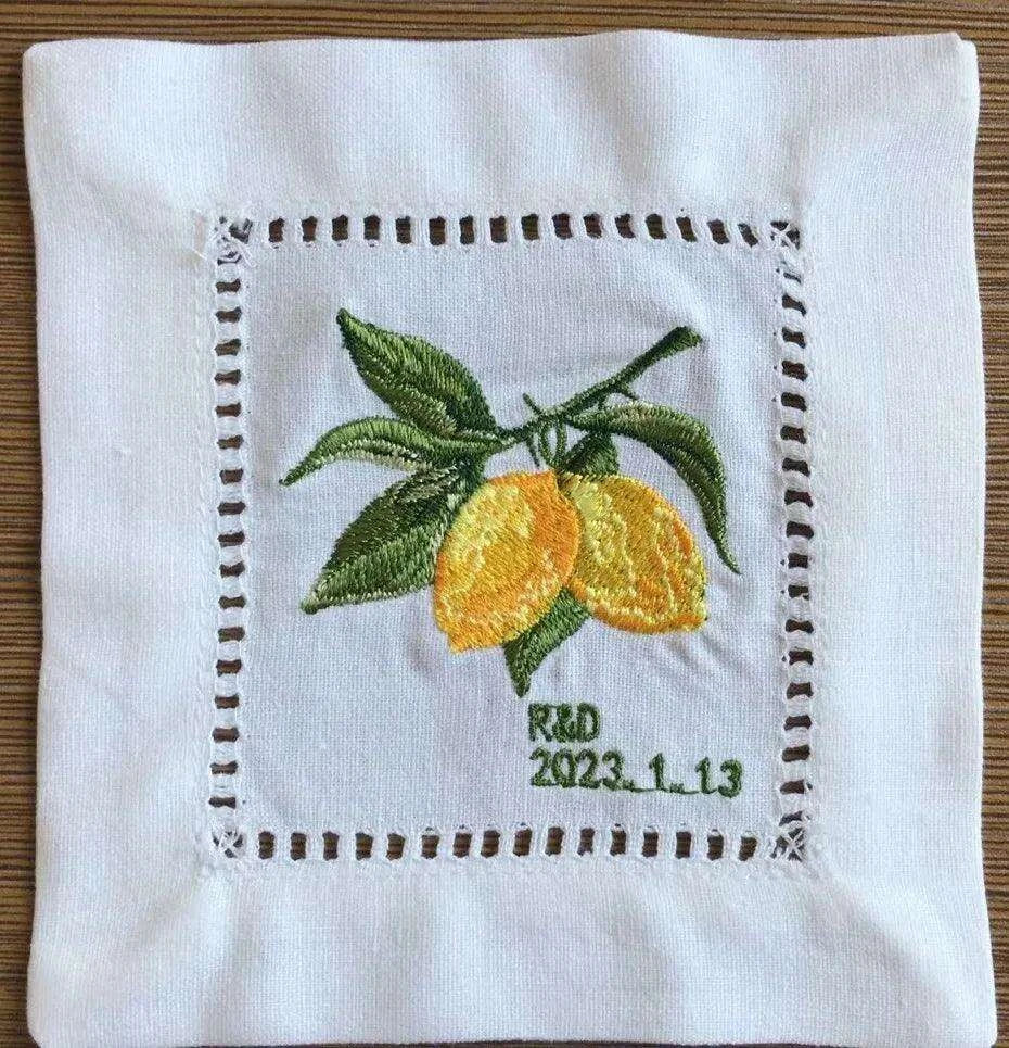Charming Lemon Lace Embroidered Cocktail Napkin - Personalized Elegance for Your Table