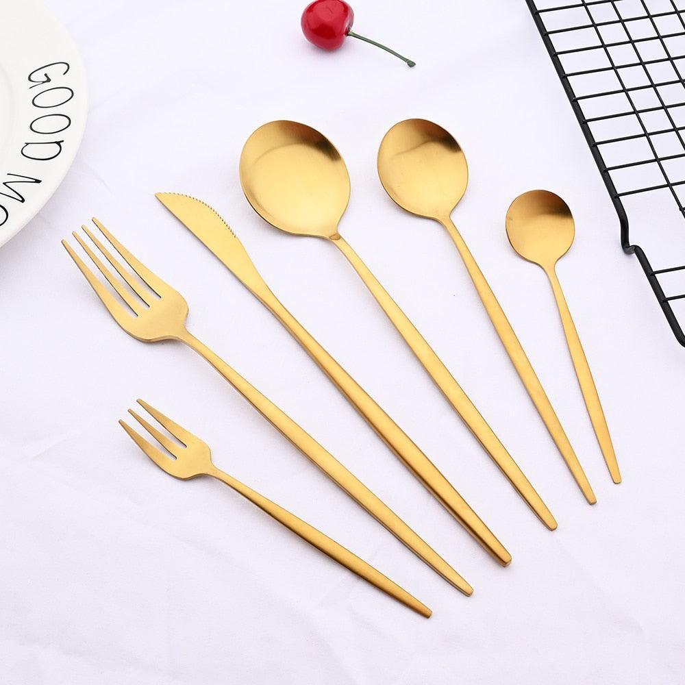 Elegant Matte Black and Gold 36-Piece Stainless Steel Cutlery Collection