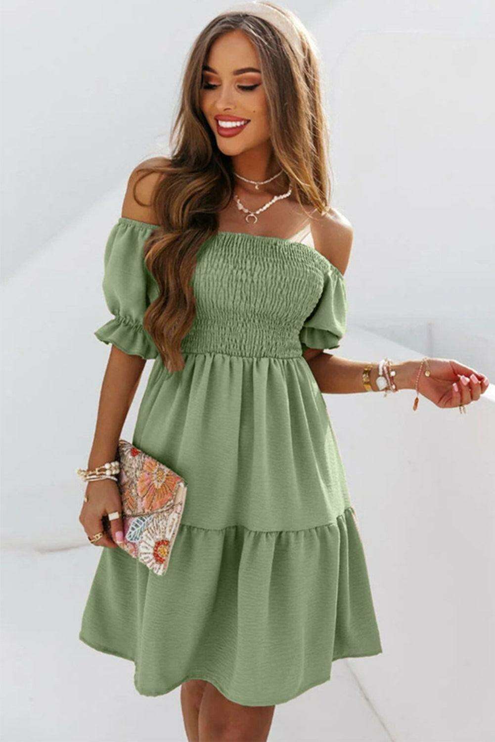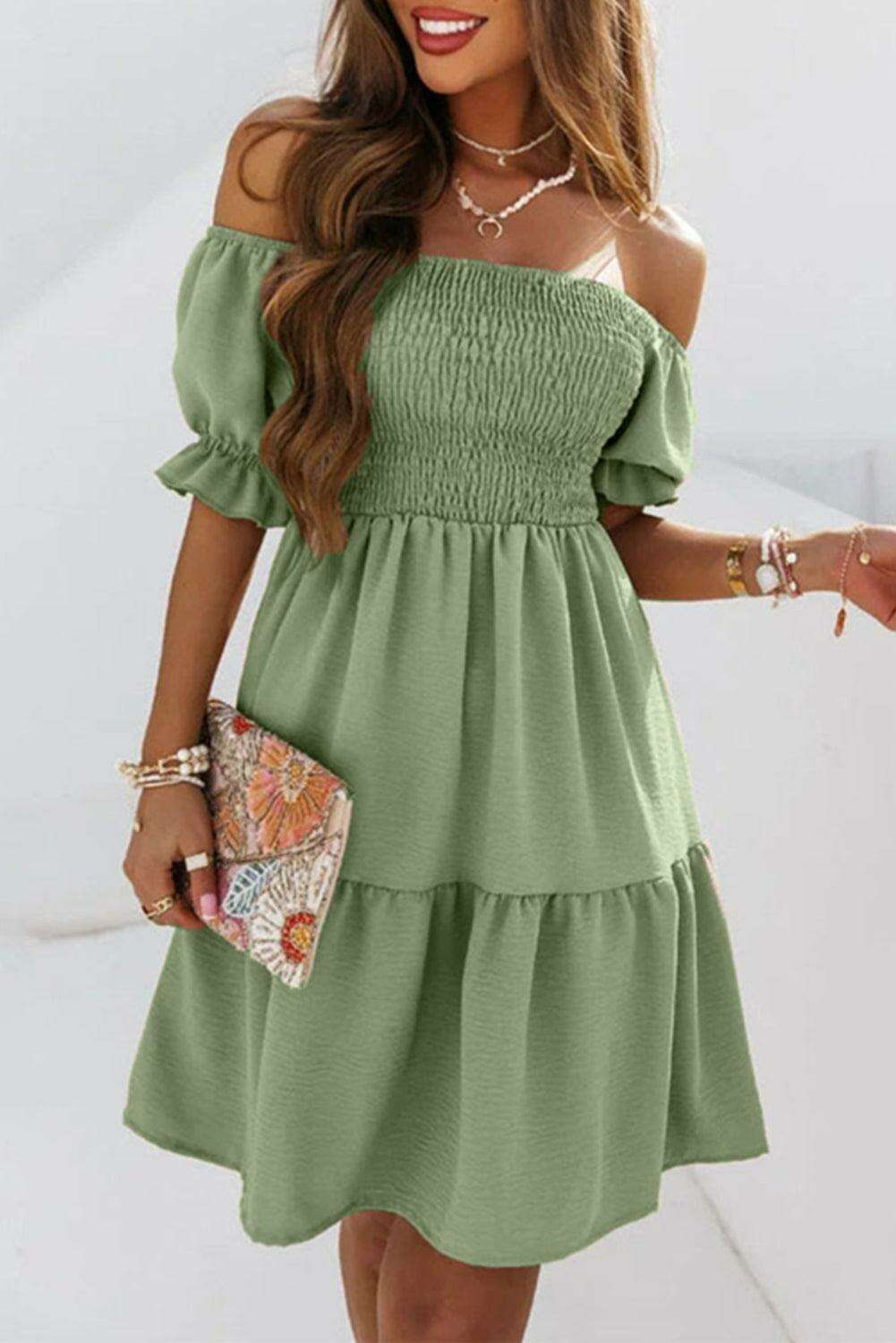 Elegant Off-Shoulder Mini Dress with Flattering Shirred Accents