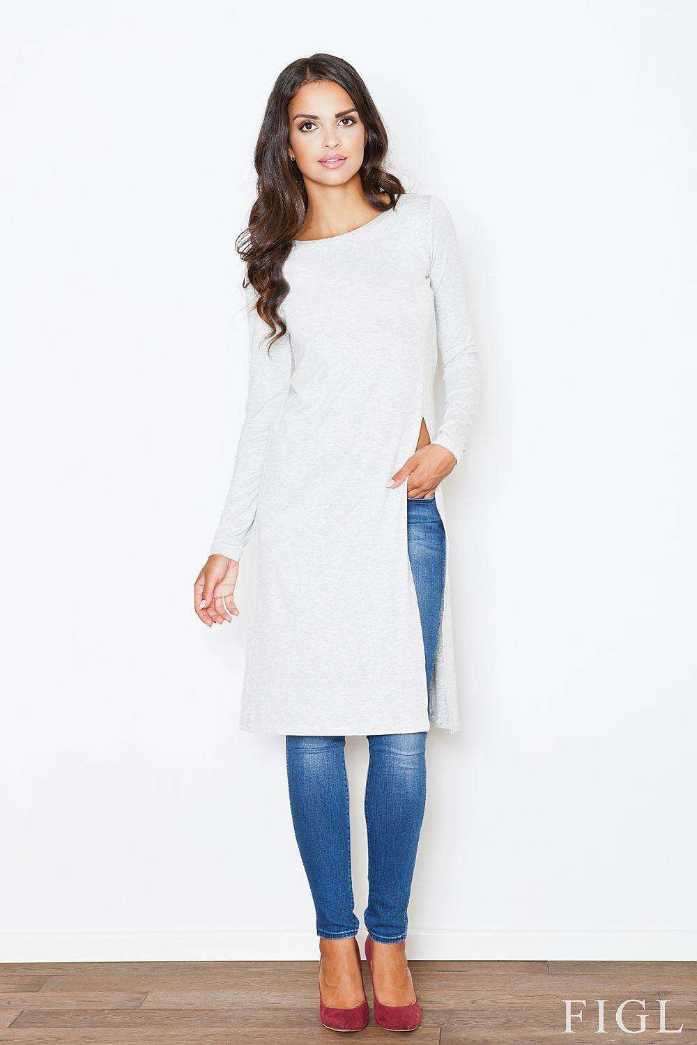 Chic Long Sleeve Tunic Dress with Side Slit - Mod 44461