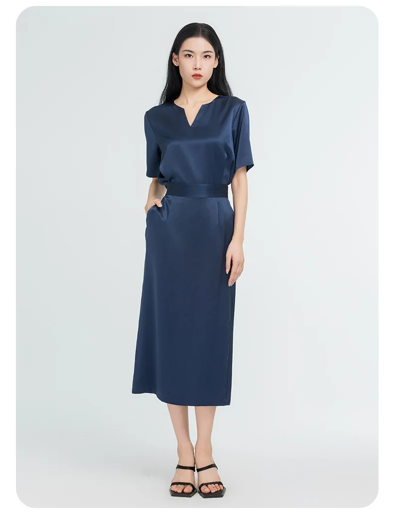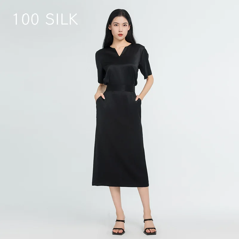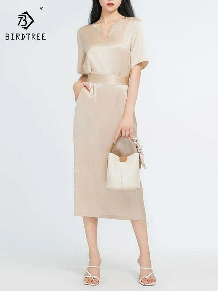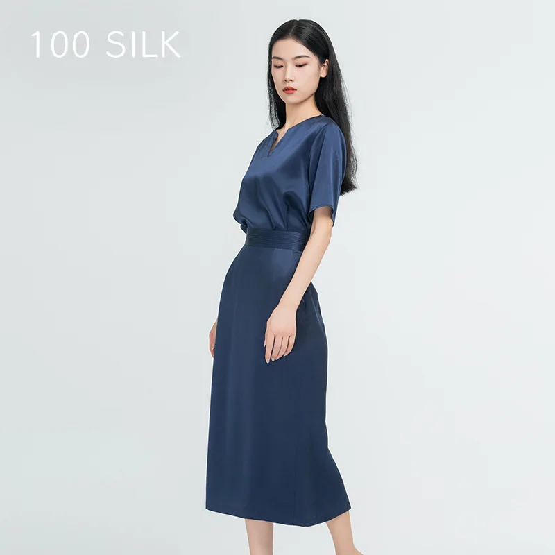 Birdtree 22MM 100% vraie soie tempérament urbain ensemble décontracté polyvalent femmes col en v chemise demi-jupe deux pièces ensemble nouveau S3N138QC