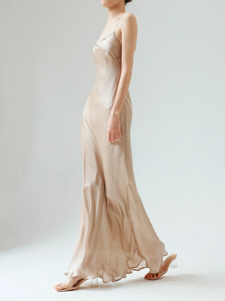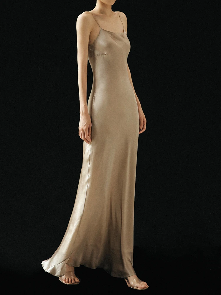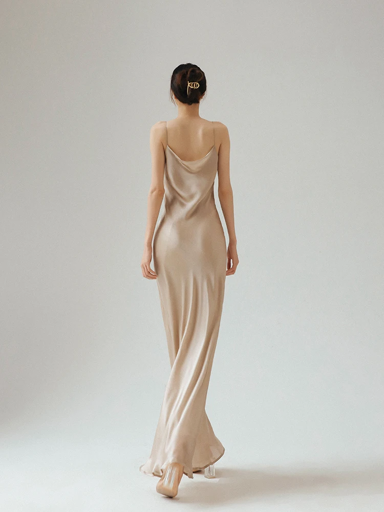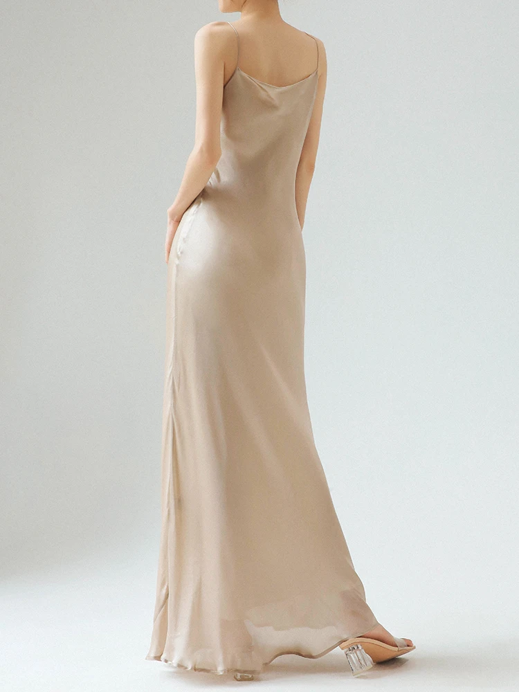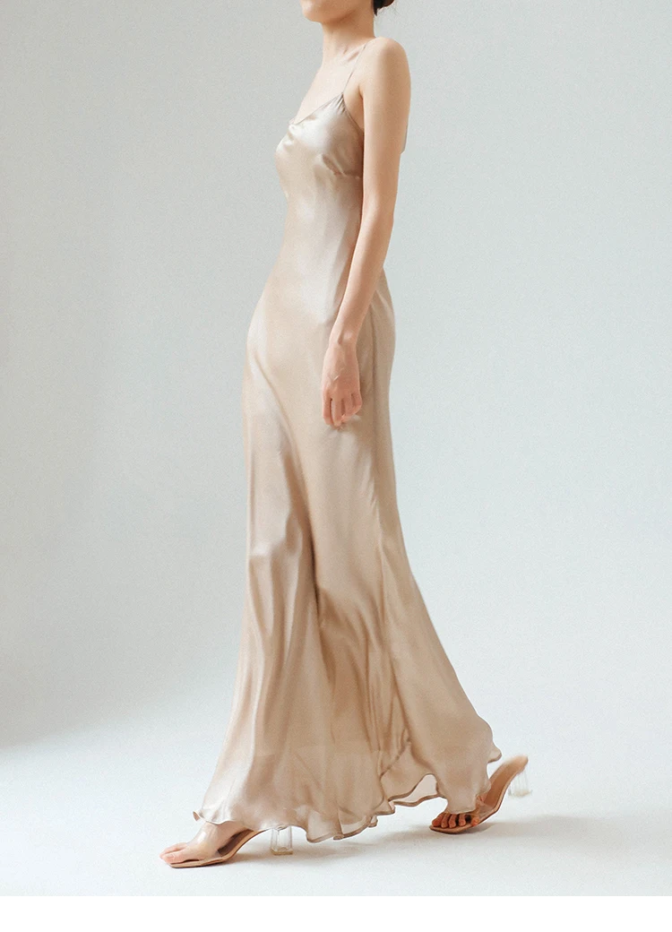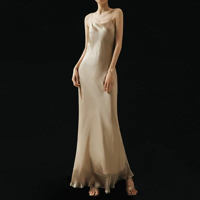 Birdtree – robe longue en Satin pour femmes, élégante, en soie de mûrier, sans manches, Design Original, robe de soirée, nouvelle collection printemps été 100%