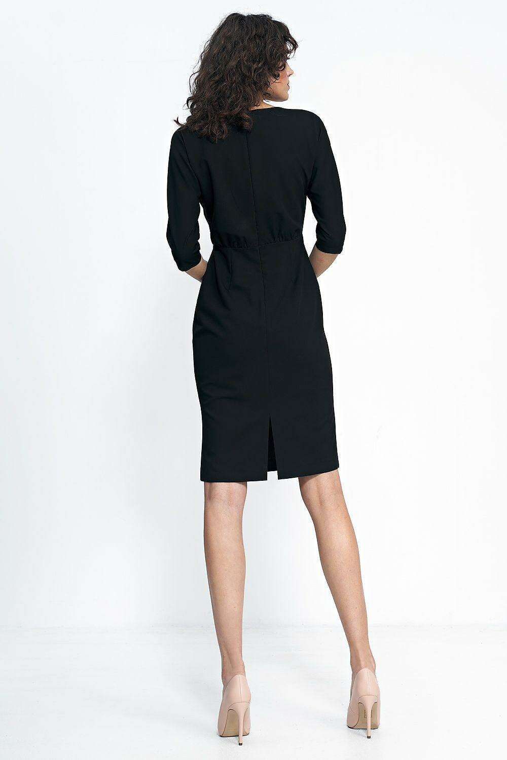 • Nife Elegant Evening Gown With Tulle Insert And Bat Sleeves