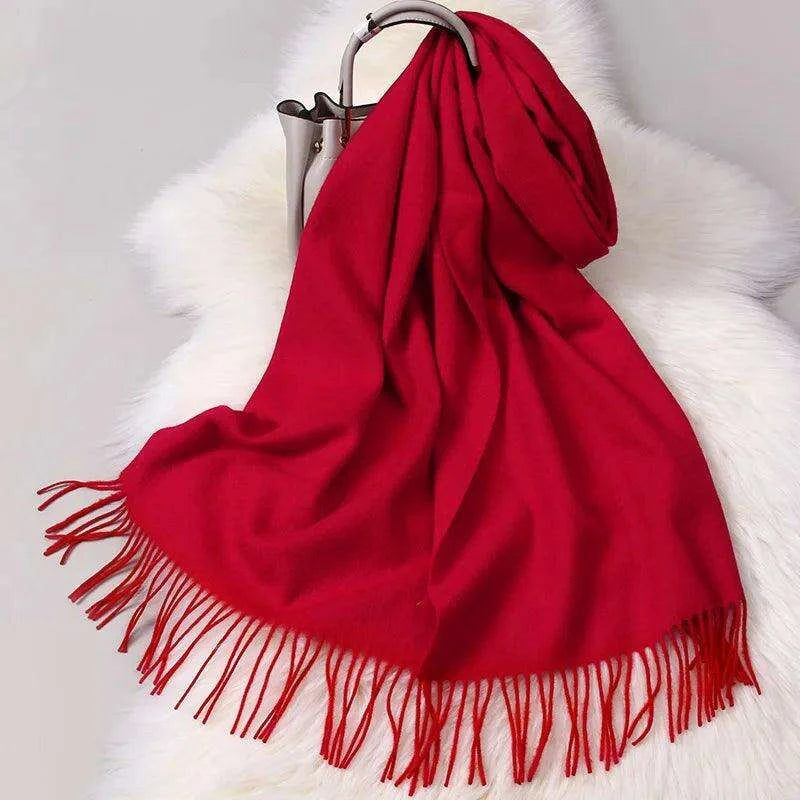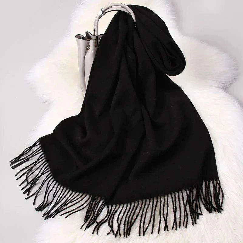 Chic Tassel-Embellished Lamb Wool Scarf - Luxurious Winter Wrap for Stylish Comfort