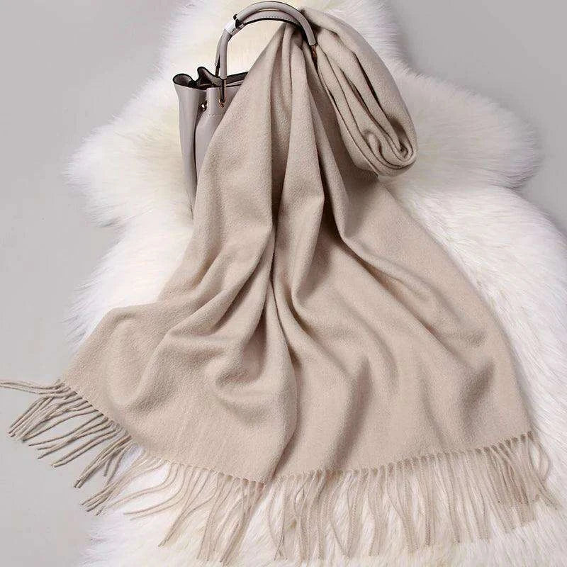 Elegant Tassel-Trimmed Lamb Wool Wrap - Luxe Winter Scarf for Fashionable Warmth