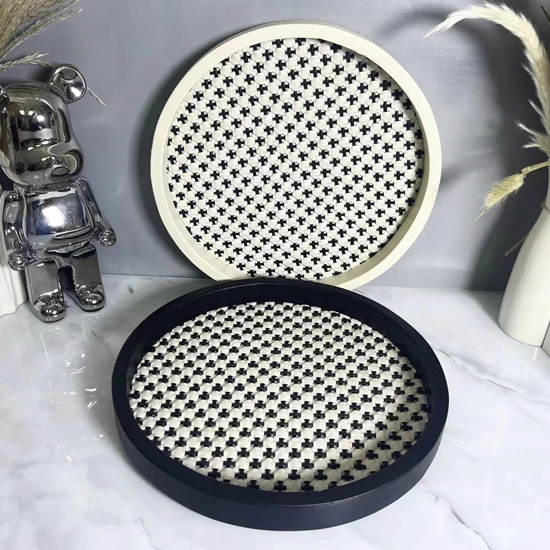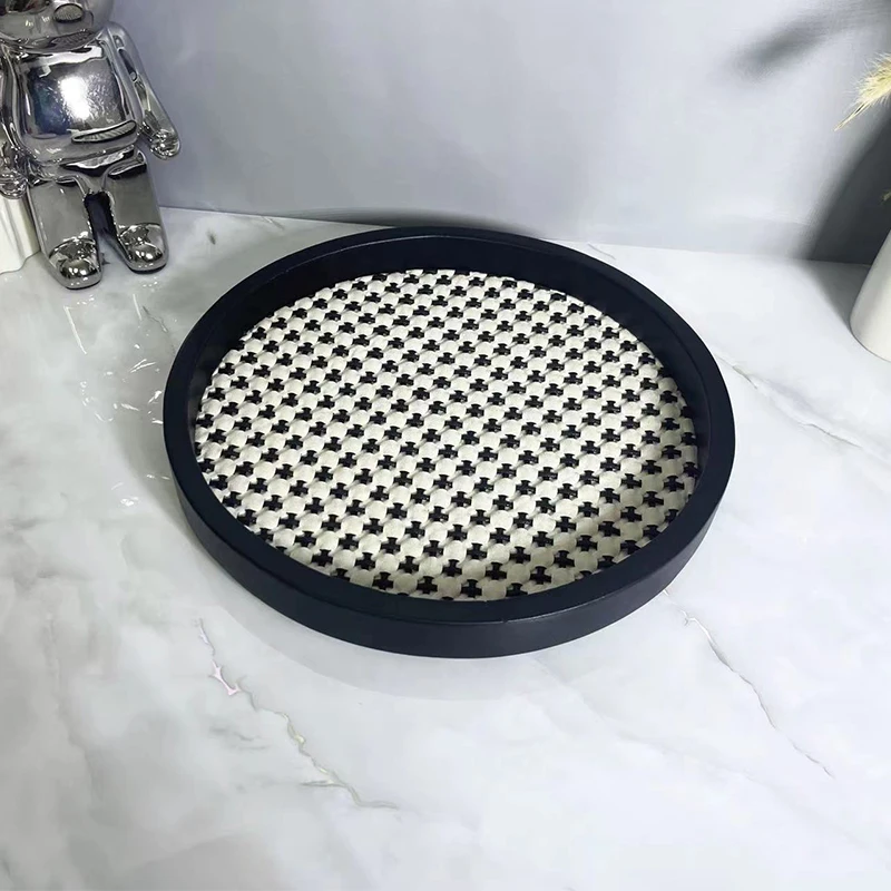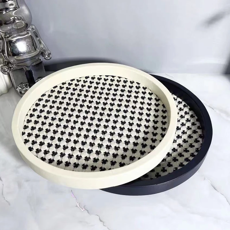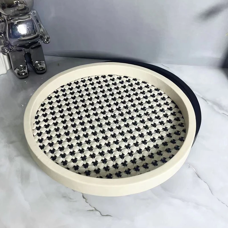 Plateau de rangement rond en cuir véritable, plaque de clé de bijoux, plateau de parfum cosmétique, organisateur d'articles divers de bureau, décor de salon de maison