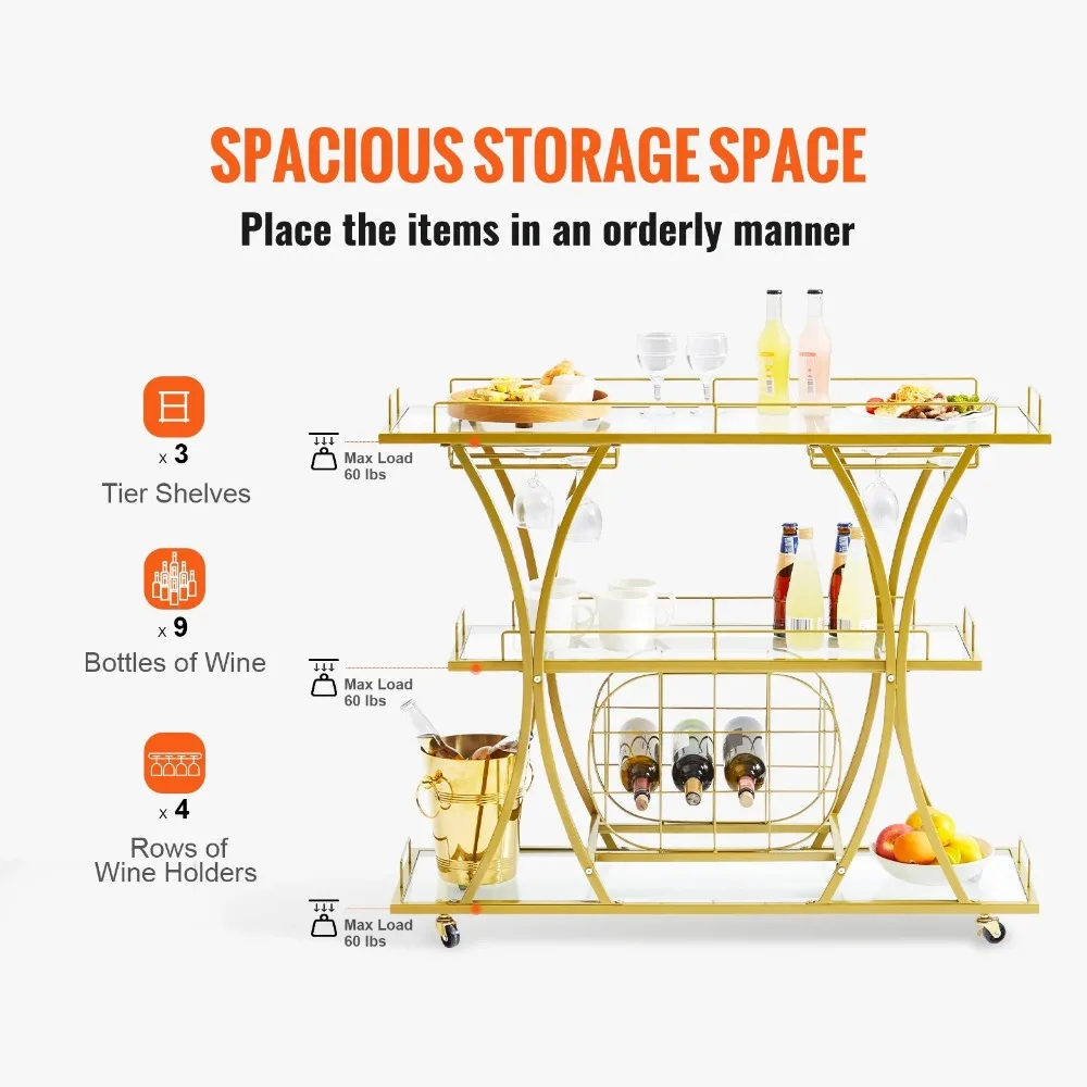 - Chariot vintage à 3 niveaux : combinaison parfaite de porte-vin, de table et de porte-verre pour un service efficace.