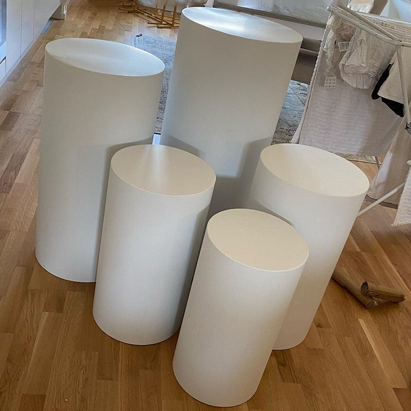 Elegant White and Gold Cylinder Display Pedestals Set