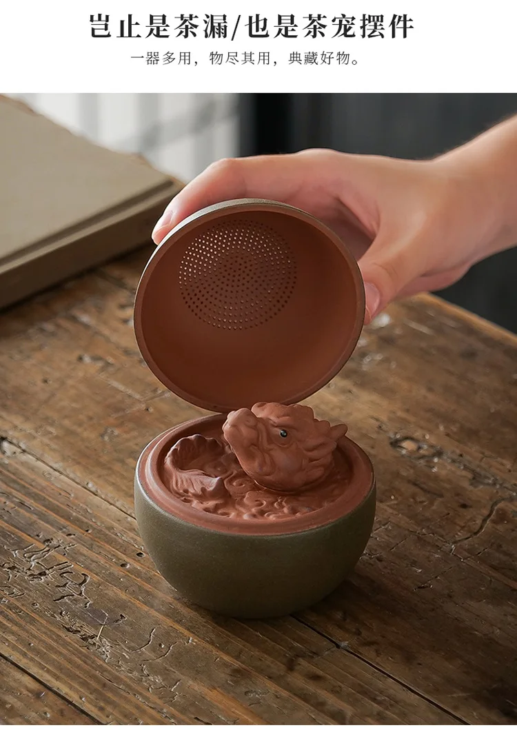 Filtre à passoire à thé intégré au sable violet, créatif, œuf de dragon, ornement pour animaux de compagnie, accessoires pour service à thé