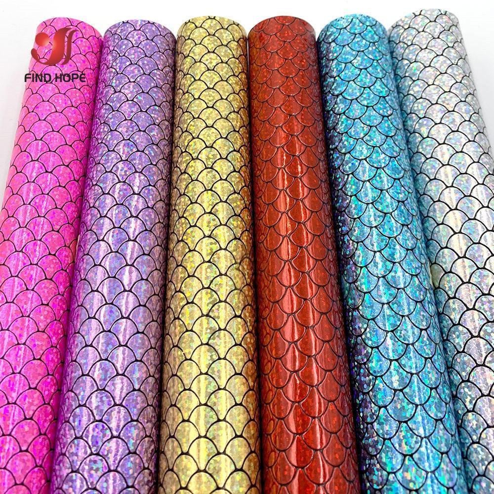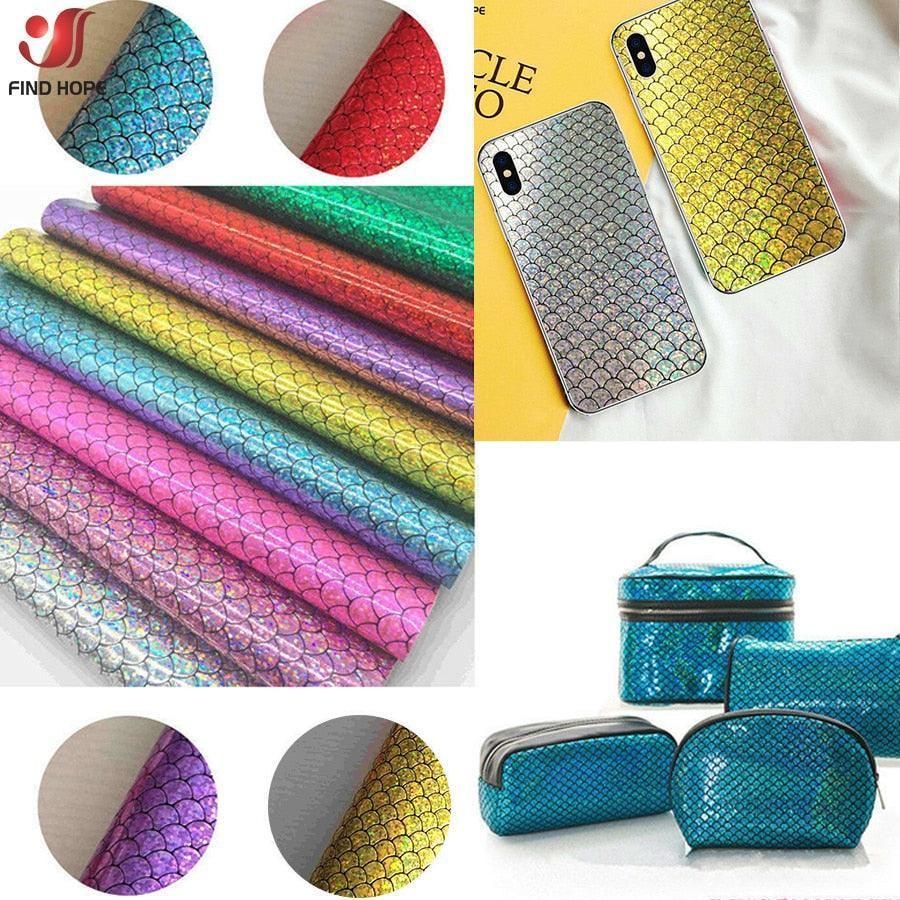 Enchanted Holographic Mermaid Scale PU Faux Leather for Creative DIY Crafts