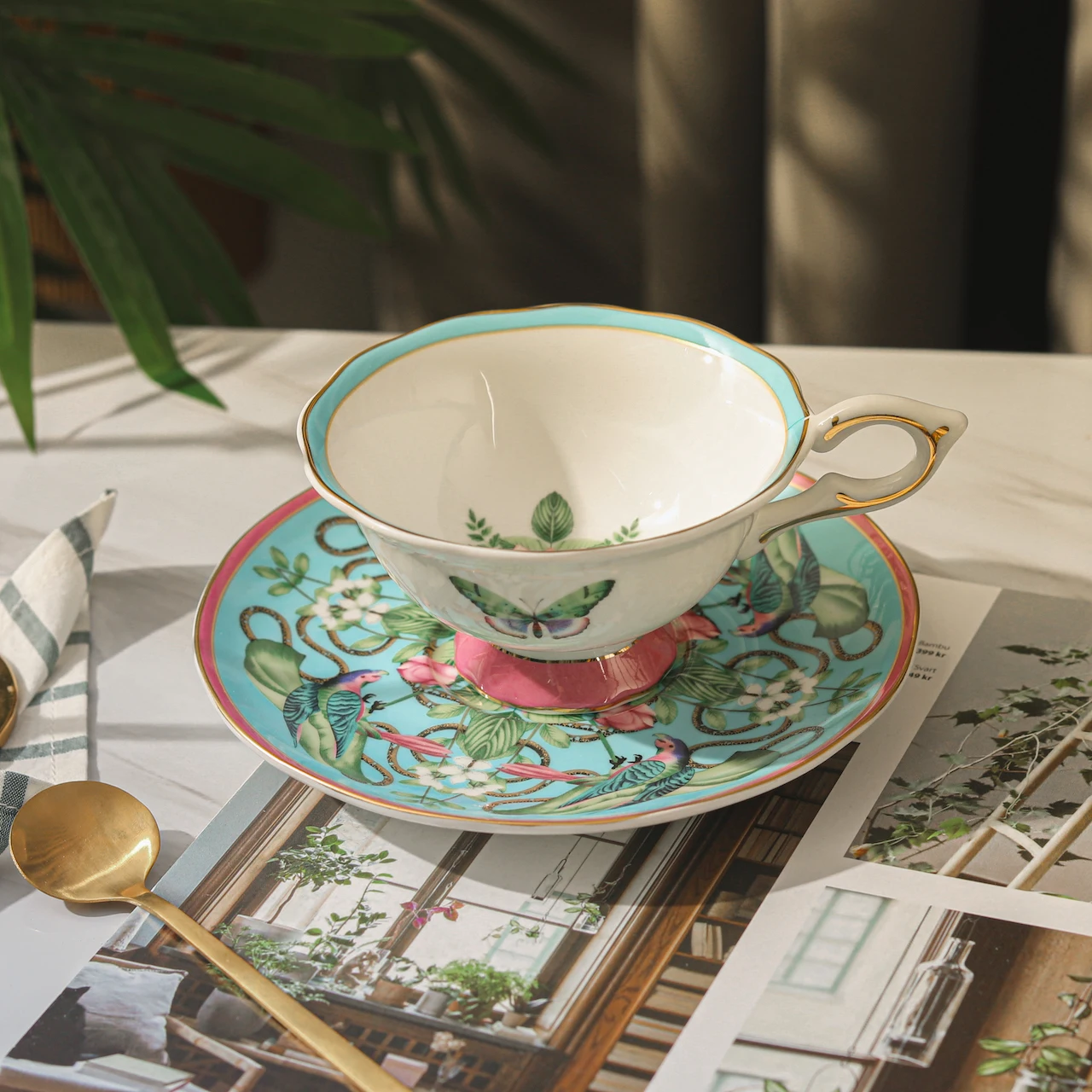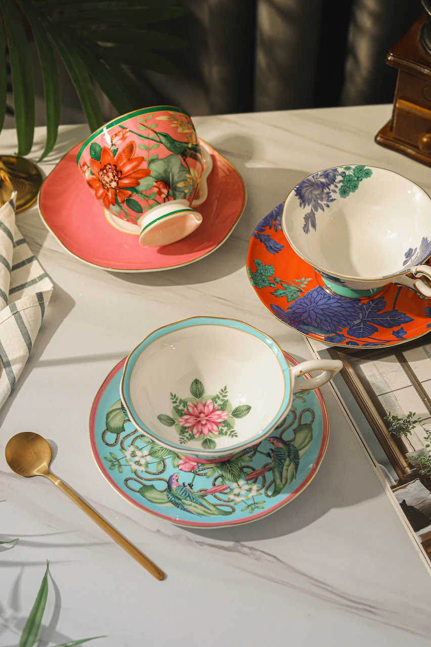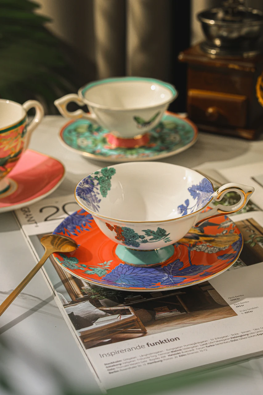 Ensemble de tasses à café et d'assiettes en porcelaine d'os haut de gamme britannique, tasse à thé de Style pastoral européen, tasses de ménage à motif papillon, cadeau