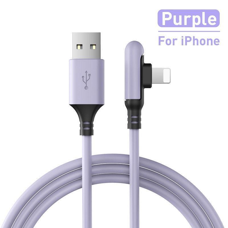 Flexible 90 Degree Liquid Silicone iPhone Fast Charging Cable - Multiple Length Options Available