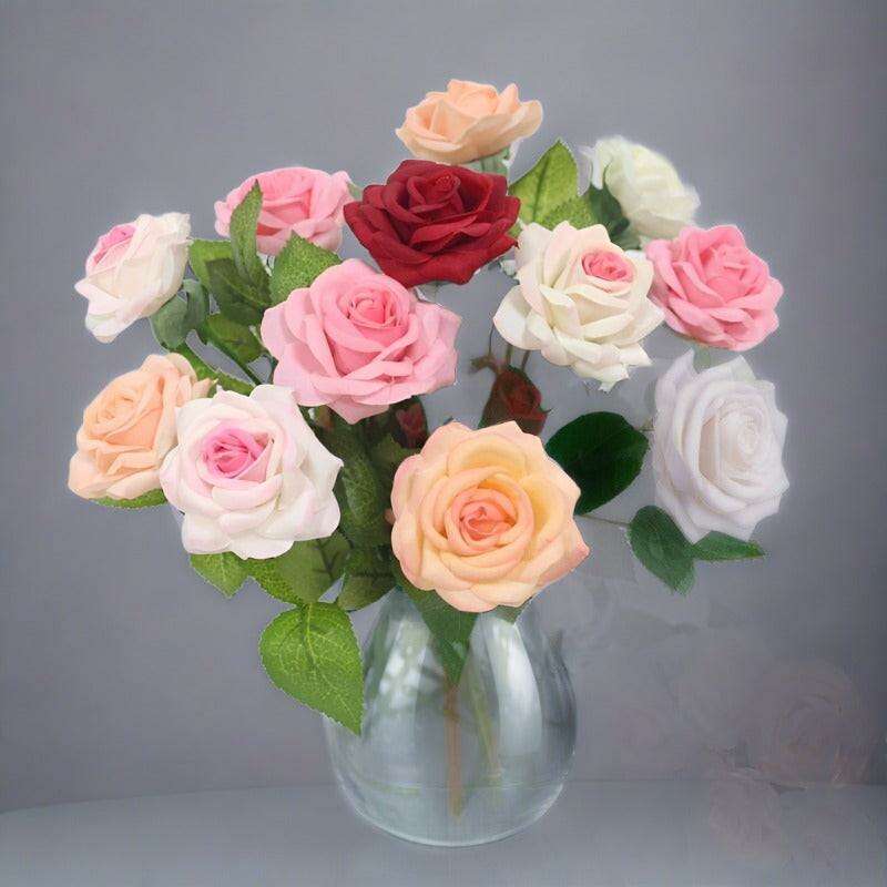 Eternal Elegance: Stunning Handcrafted Faux Latex Rose Branch for Timeless Décor