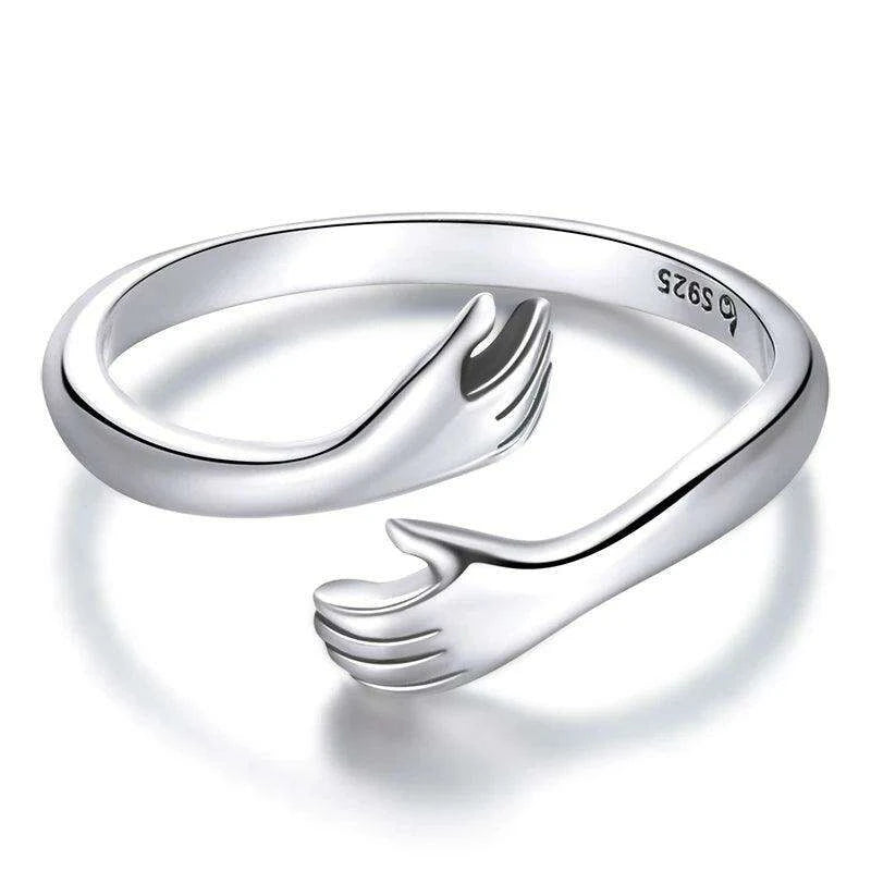 Silver Embrace Adjustable Hand Hug Ring - A Symbol of Endless Love
