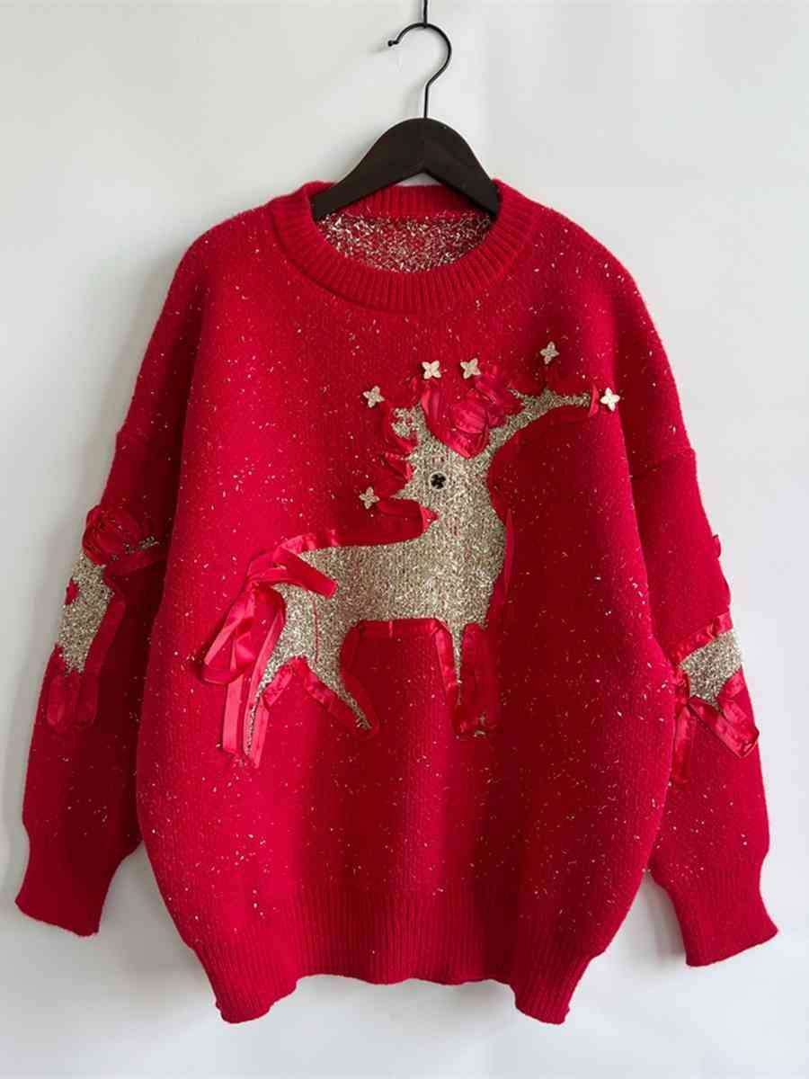 Festive Reindeer Long Sleeve Sweater for the Holiday Season