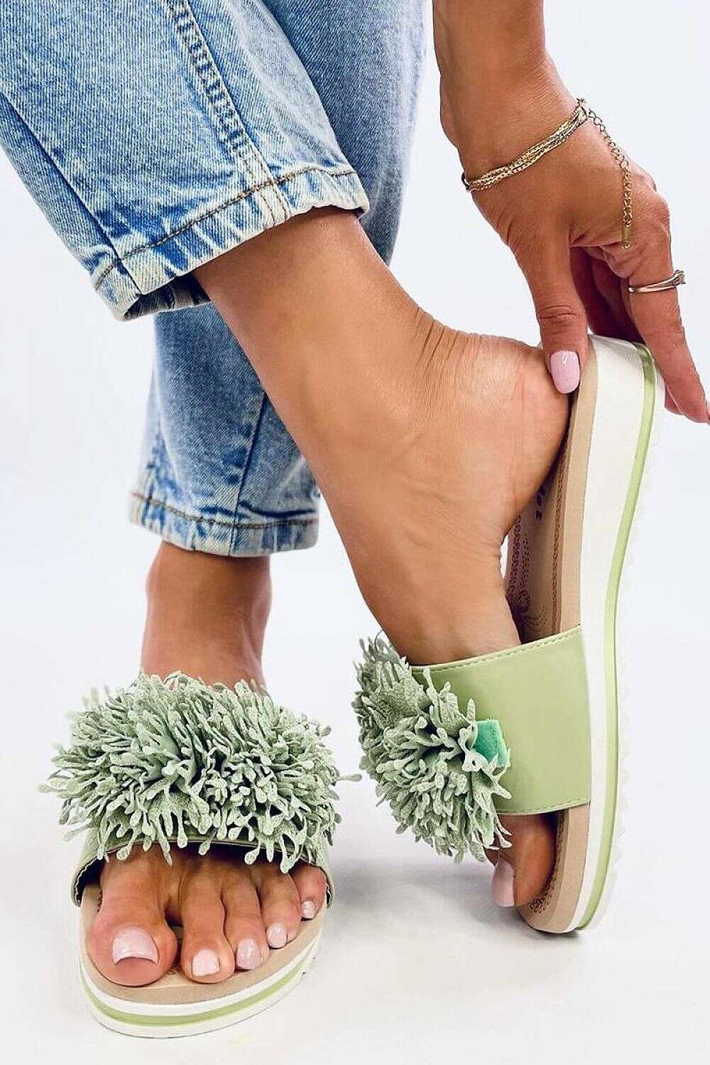 Women's wedge sandals with a height of 3.5 cm. What catches the attention is the beautiful floral application, which is a must-have accessory this season : ) You will look great in any situation and enjoy comfort with every step! Outer material - synthetic leather.