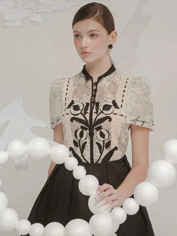 • Exquisite Embroidery: The floral lace top showcases intricate embroidery, adding a touch of femininity and elegance to your look.