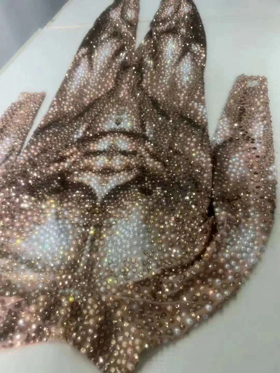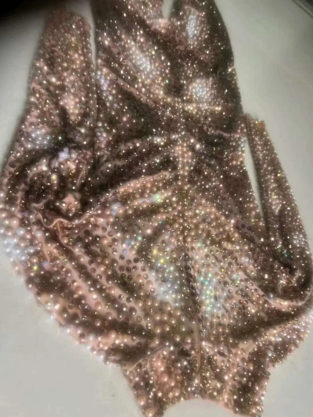Dazzling Nightlife: Men's Rhinestone and Pearl Jumpsuit for Show-Stopping Elegance