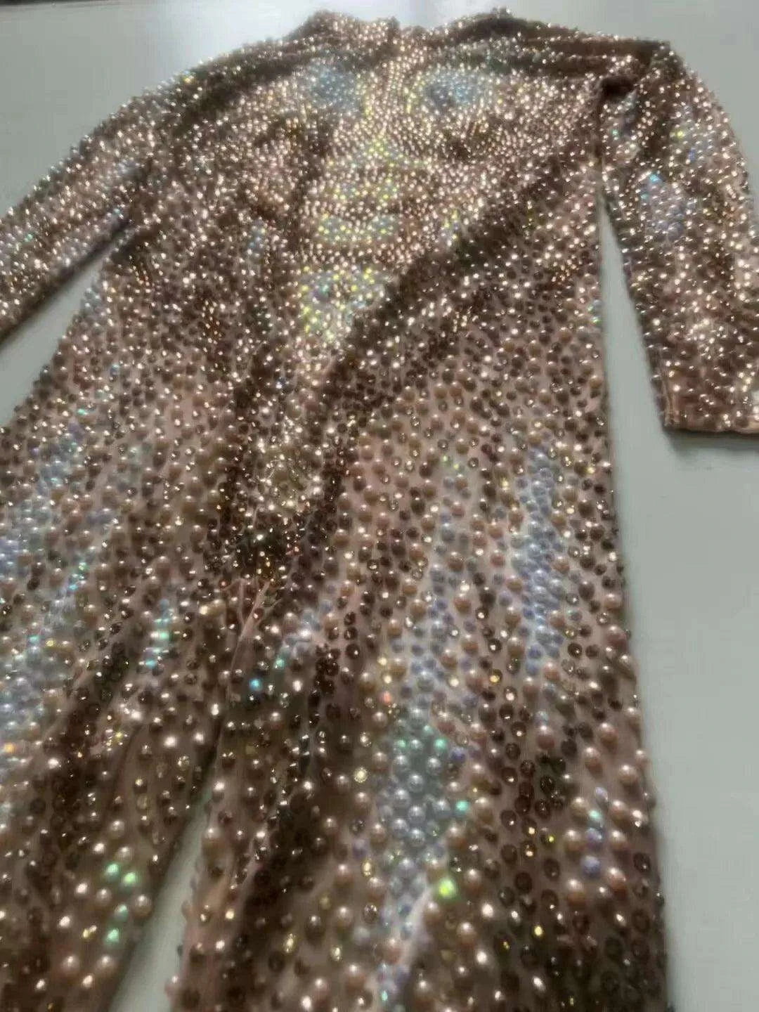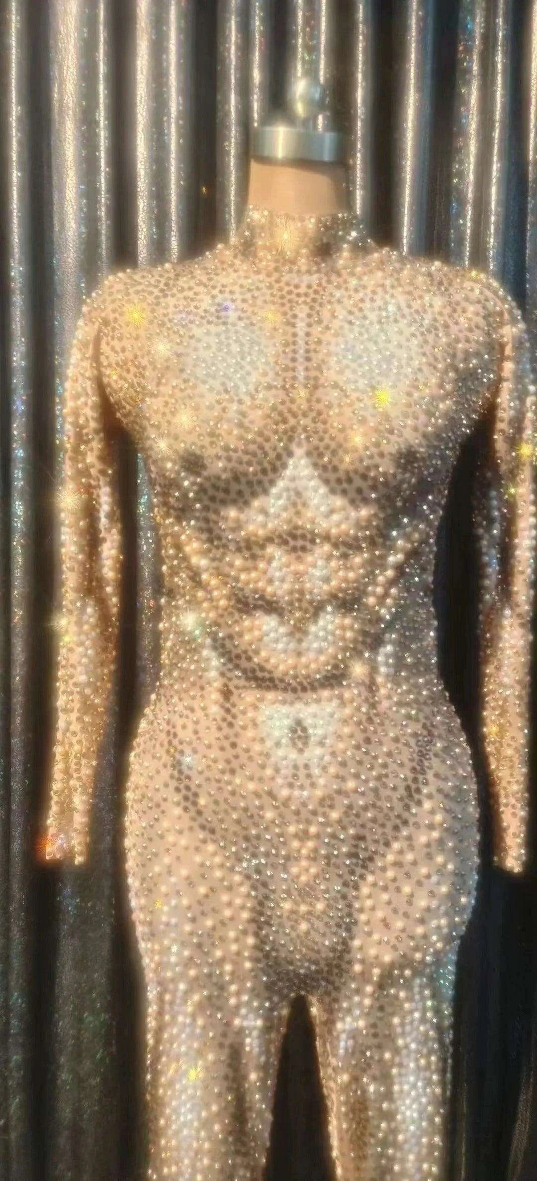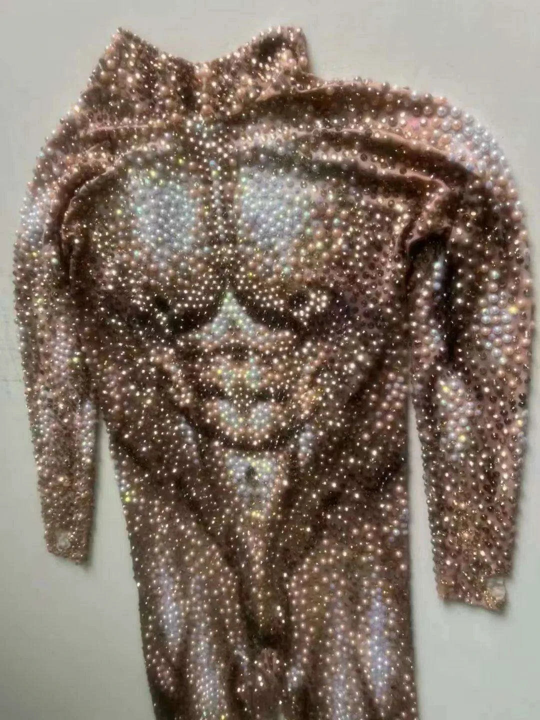 Glamorous Night Out: Men's Rhinestone and Pearl Jumpsuit for Unforgettable Style
