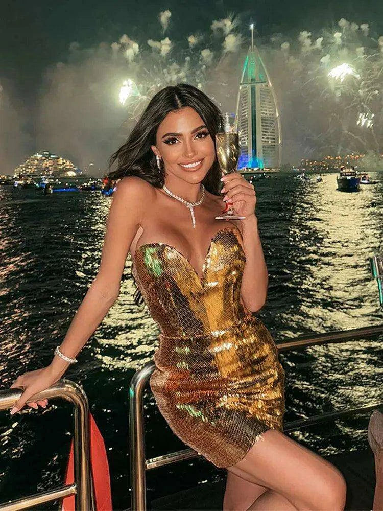 Shimmering Gold Sequin Bodycon Dress - Stylish Strapless Mini for Women