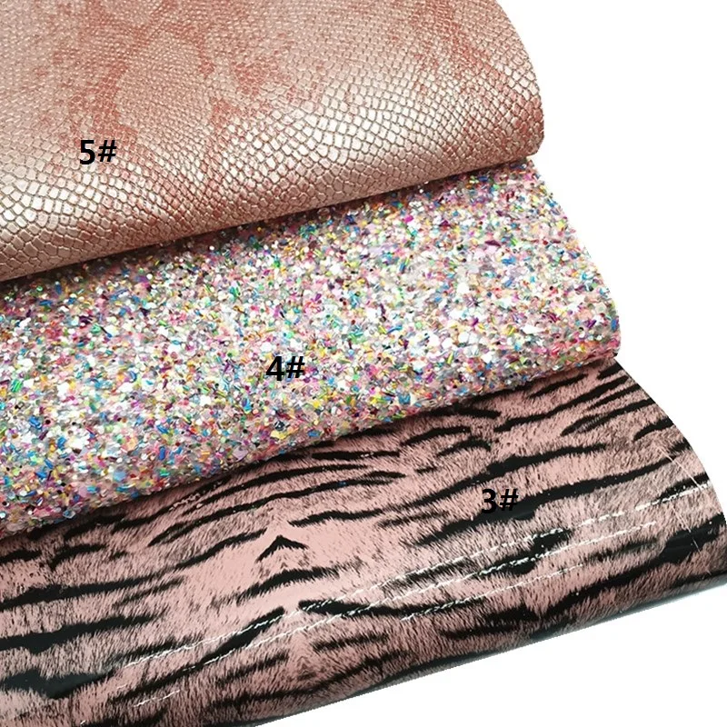 Feuilles de cuir à paillettes roses avec imprimé tigre, Faux cuir brillant, motif nid d'abeille, imprimé serpent pour nœuds DIY
