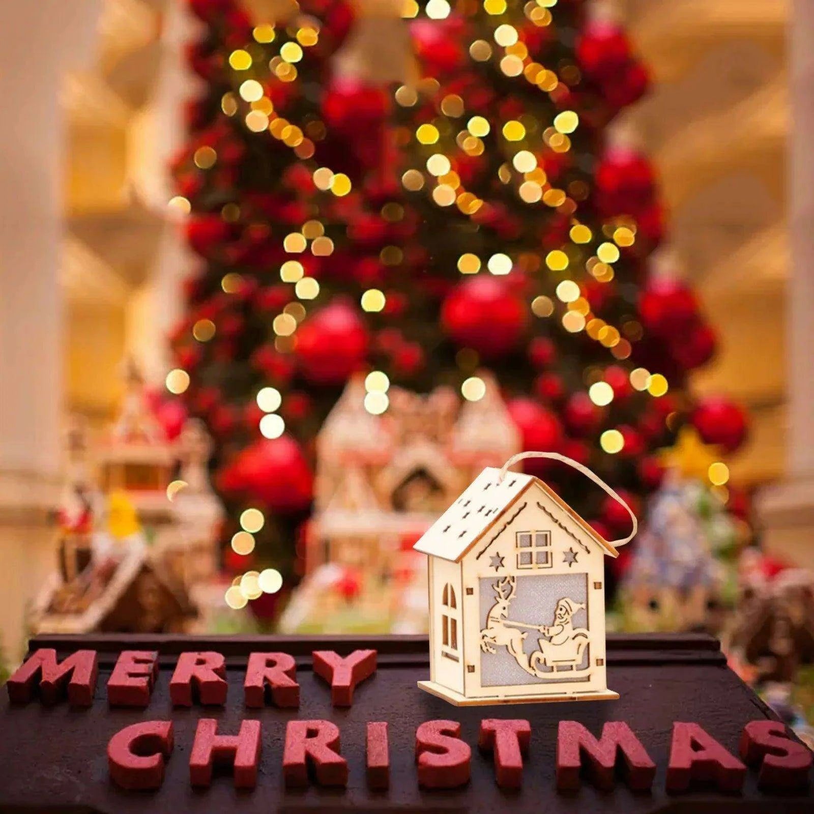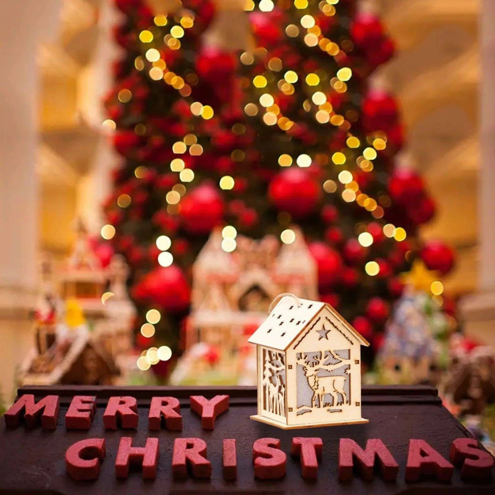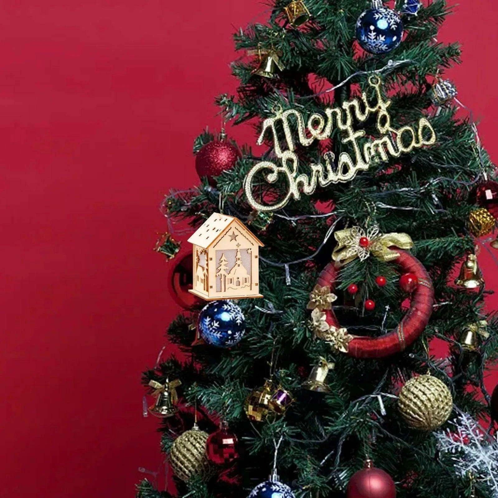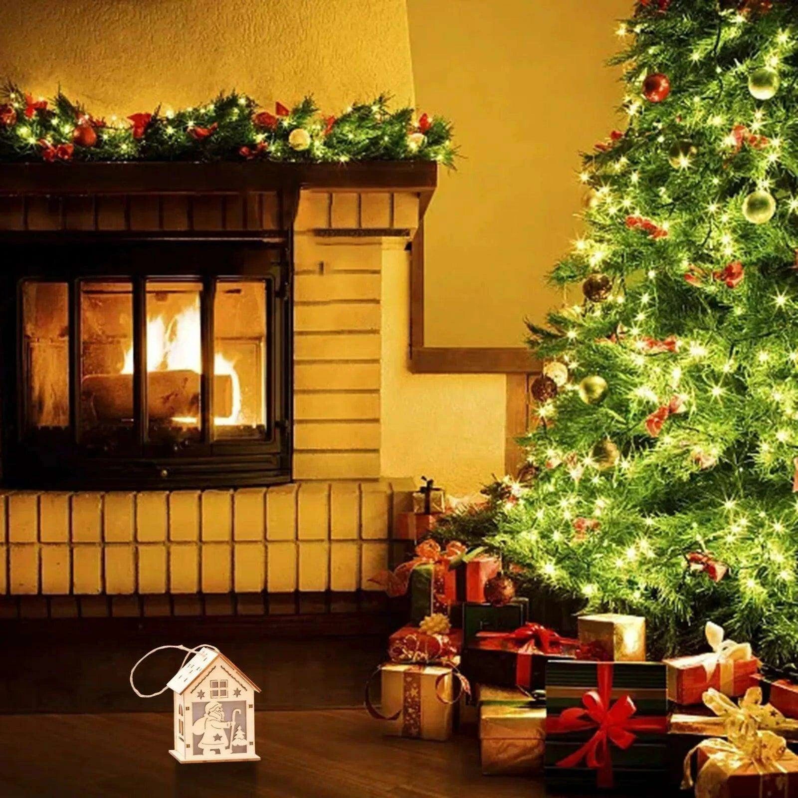 Maison en bois à faire soi-même, décoration de fenêtre, cadeau de nouvel an 2021, décorations de noël, cabine lumineuse, maison de neige, décor d'arbre de noël