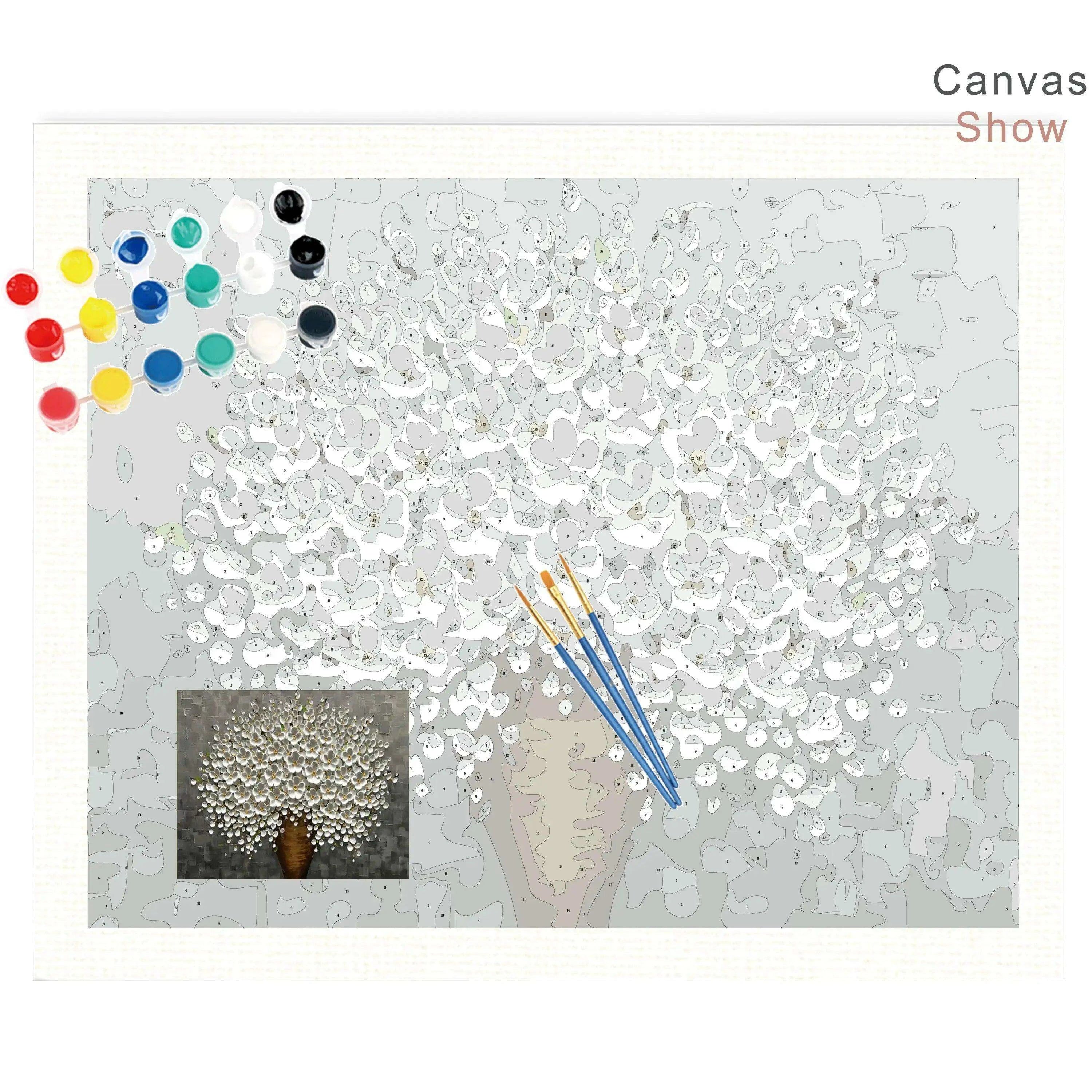 Blooming Gray Acrylic Painting Kit for Adults - Complete DIY Set with Canvas, Brushes, and Paints