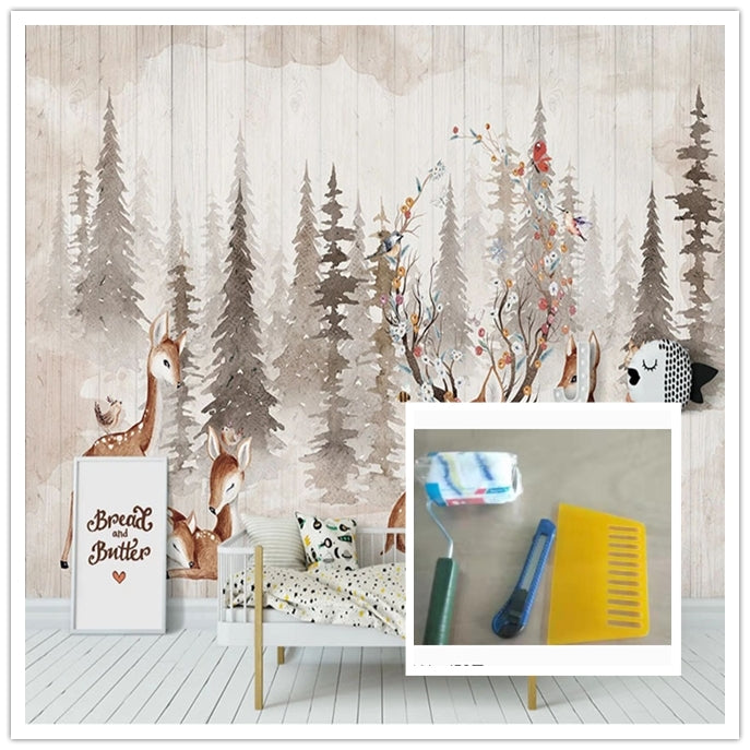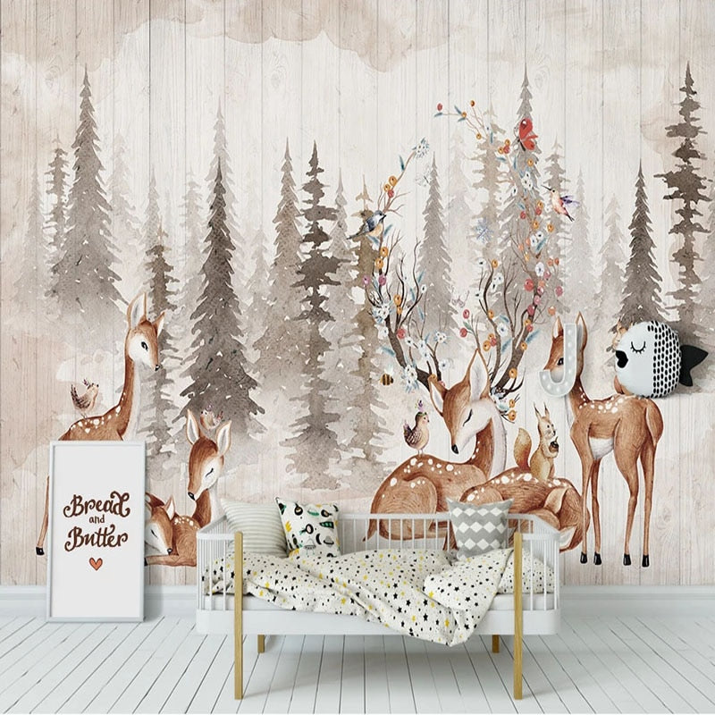 Hand-painted 3D mural wallpaper with vintage murals of elk