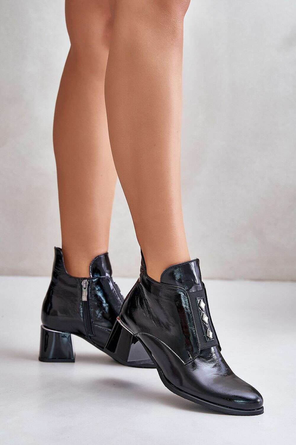 Women's boots with ankle-length upper. Made of high quality natural leather. Set on a heel in the form of a block. Felt insulation will provide warmth on colder days. Fastened with a zipper. Almond-shaped toes. Elegant cut that you are sure to match with many stylings!