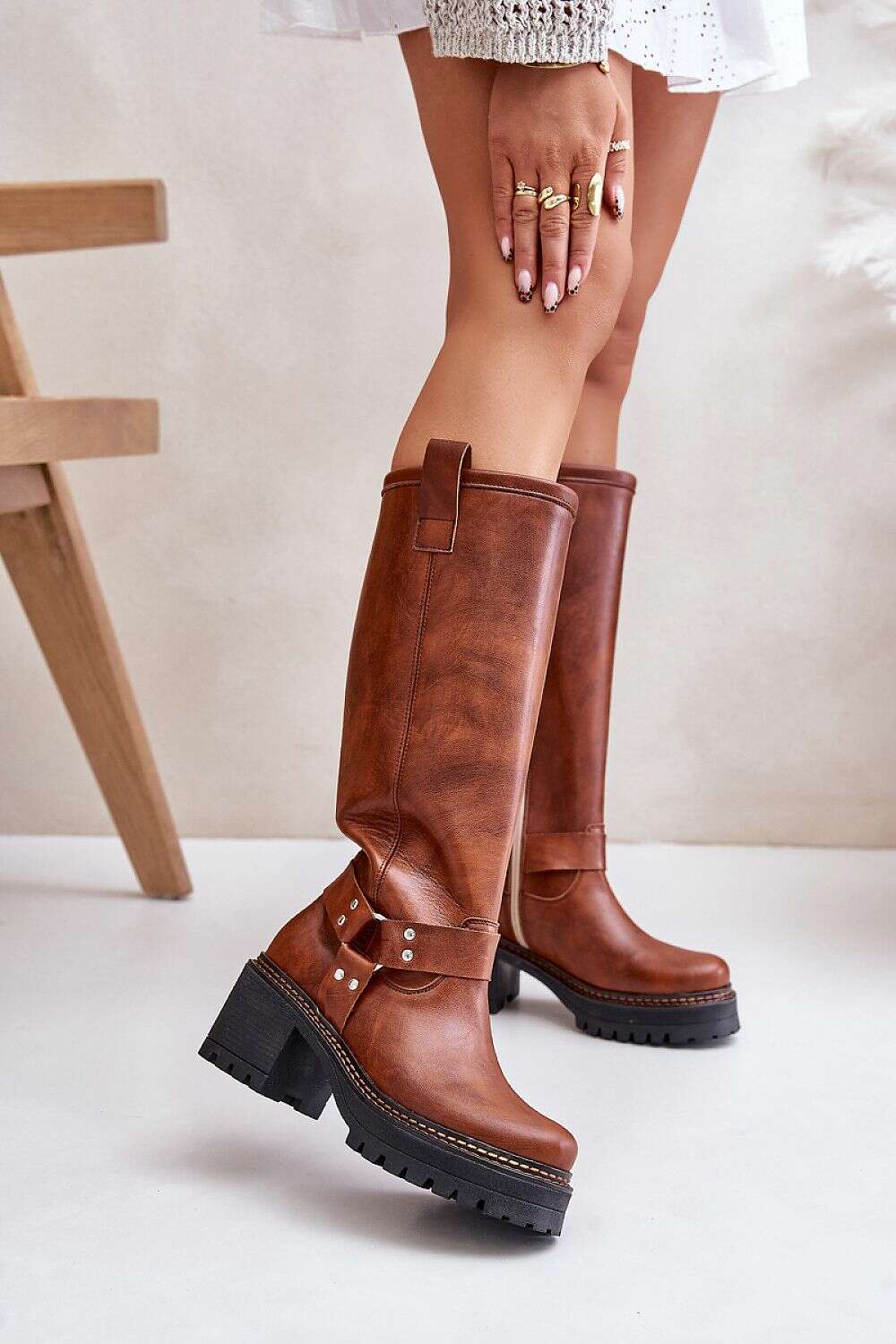 Women's boots made of high-quality natural leather. Set on a massive heel and platform, which will ensure stability on every step. The noses are rounded. Slip-on model and additionally have a zipper closure. They do not have warming. This elegant cut will go well with many stylings!