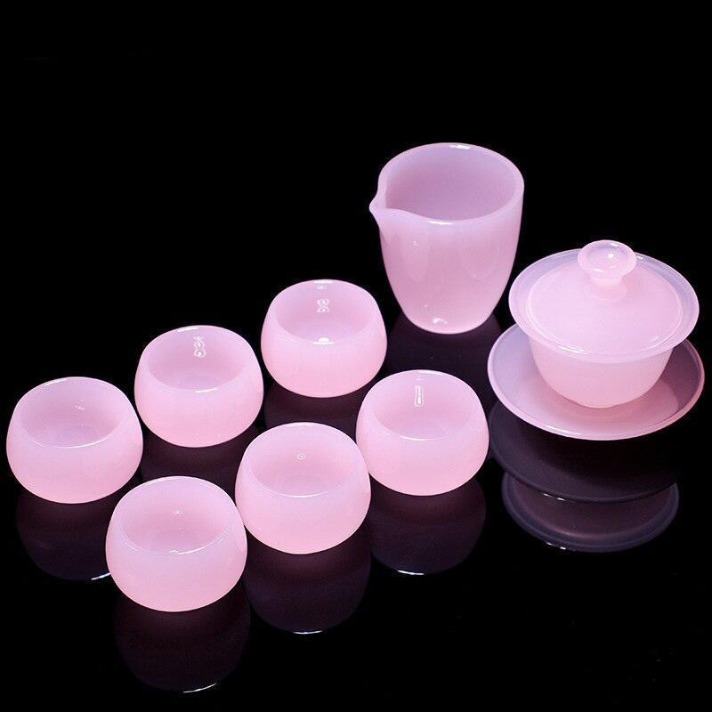 Hibiscus Pink Jade Porcelain Tea Cup Set - Exquisite Elegance for Traditional Chinese Tea Moments