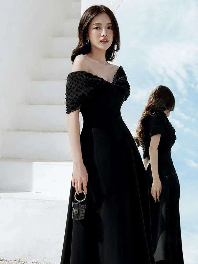 • Stylish Slash Neckline: The contemporary slash neckline beautifully frames your collarbone, providing a chic twist to the classic evening dress.
