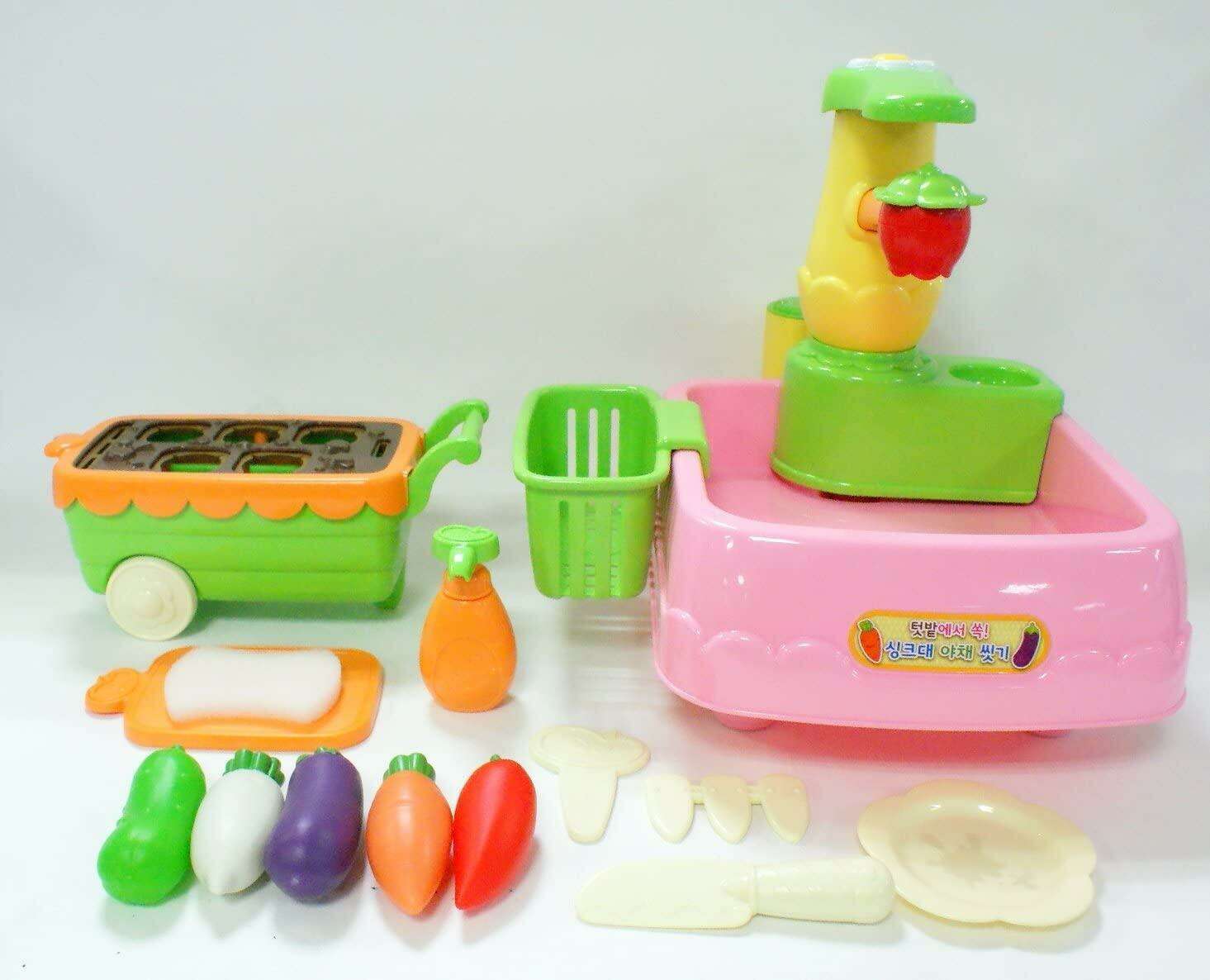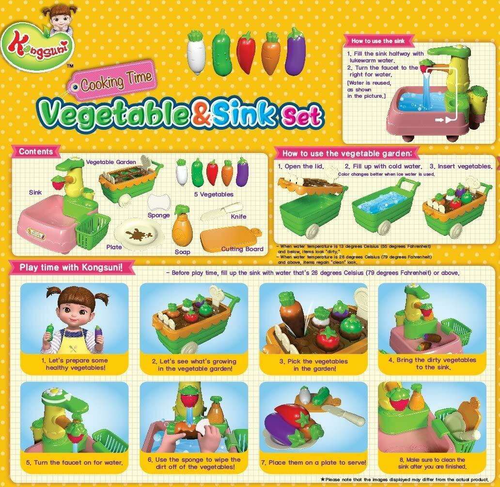 - Comprehensive Set: Includes a sink, five types of vegetables, a vegetable garden, a plate, a knife, and a cutting board for a complete cooking experience.