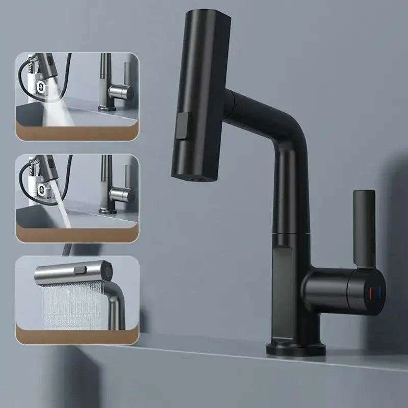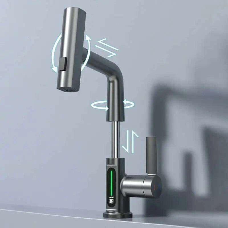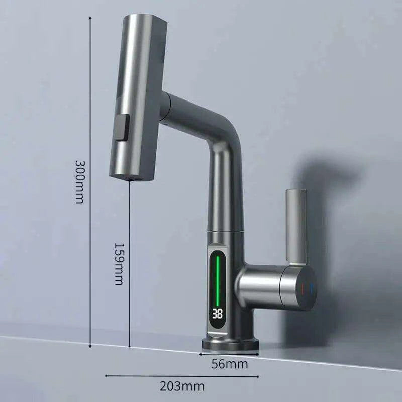 LED Waterfall Faucet with Temperature Display and Rotating Pull-Out Sprayer