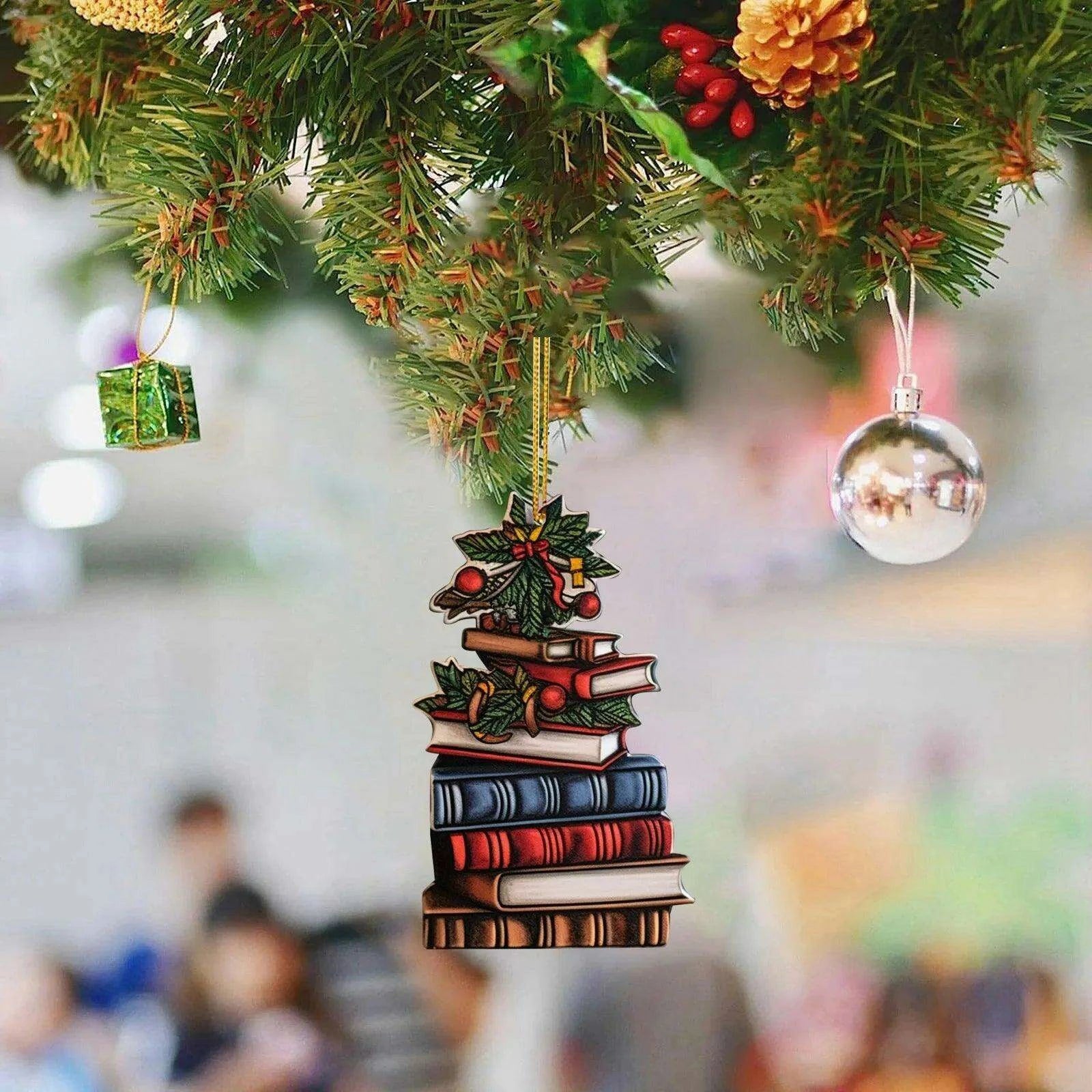 Literary Delight Christmas Ornament Set with Book-themed Acrylic Decor