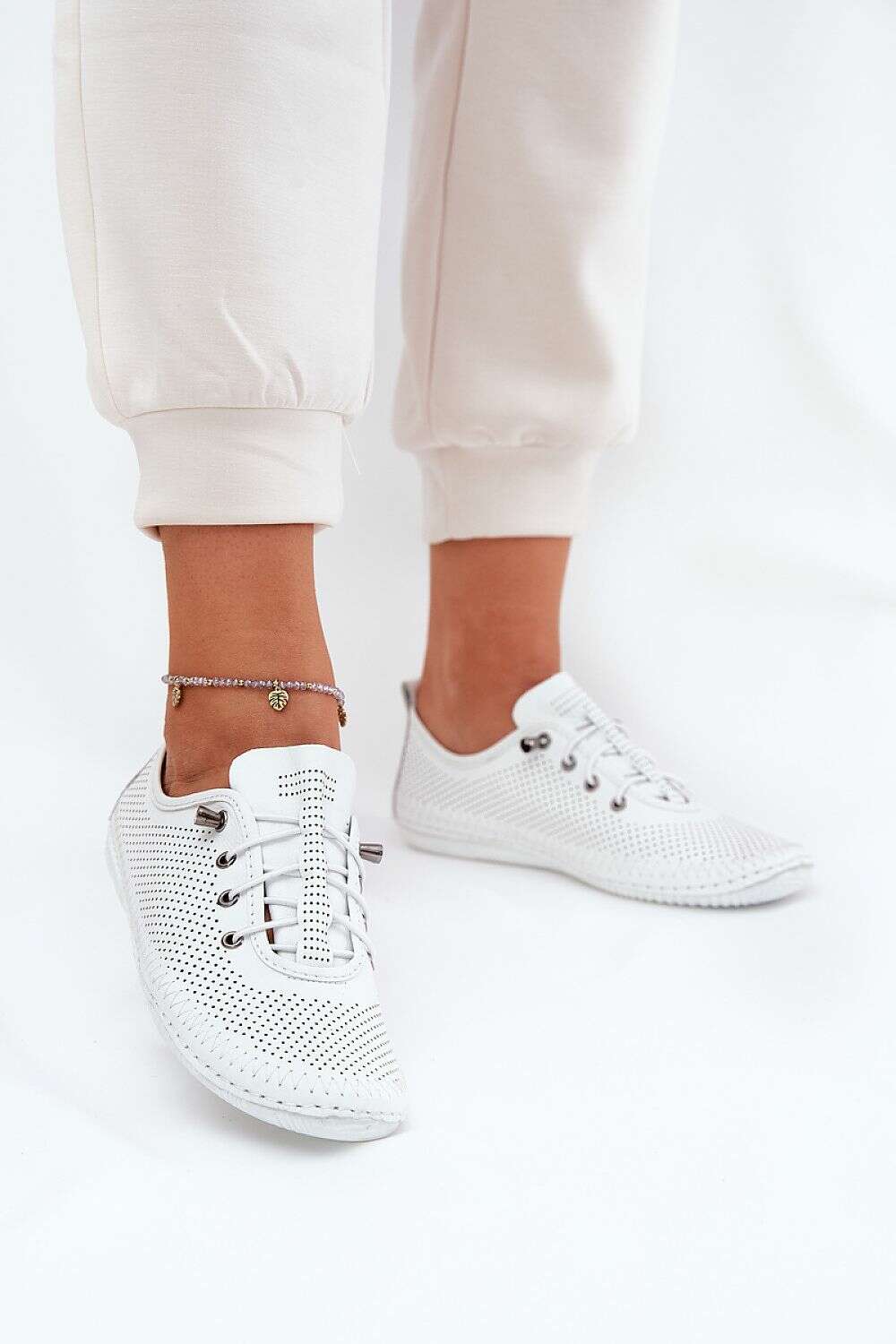 Women's leather loafers that combine comfort with functionality. Elastic bands imitating laces make it easier to put on and guarantee a perfect fit to the foot. Wide, rounded toes ensure comfort throughout the day, and the leather insole provides adequate cushioning. This is a great choice for everyday styling, offering both style and comfort.
