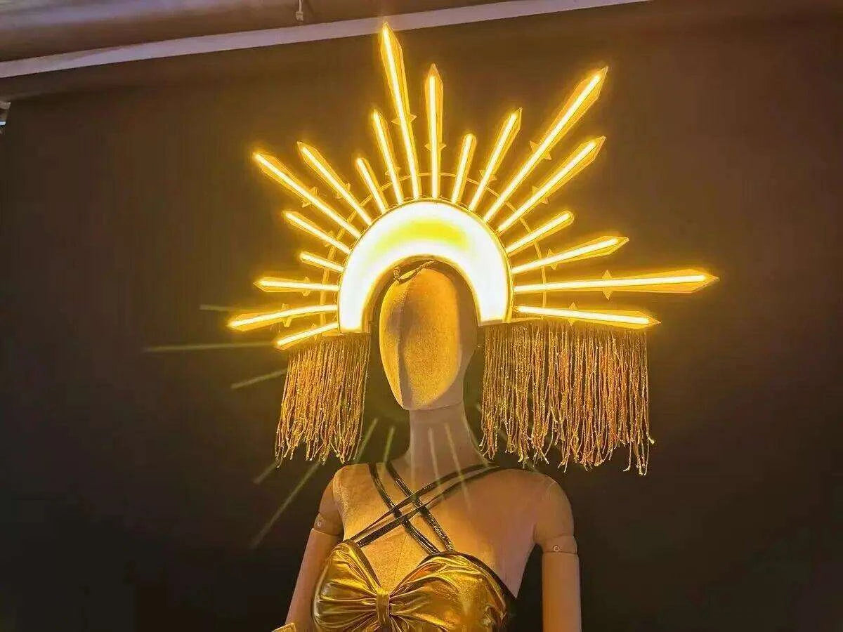 Luminous LED Performance Costume Set with Dazzling Headpiece for Female Artists
