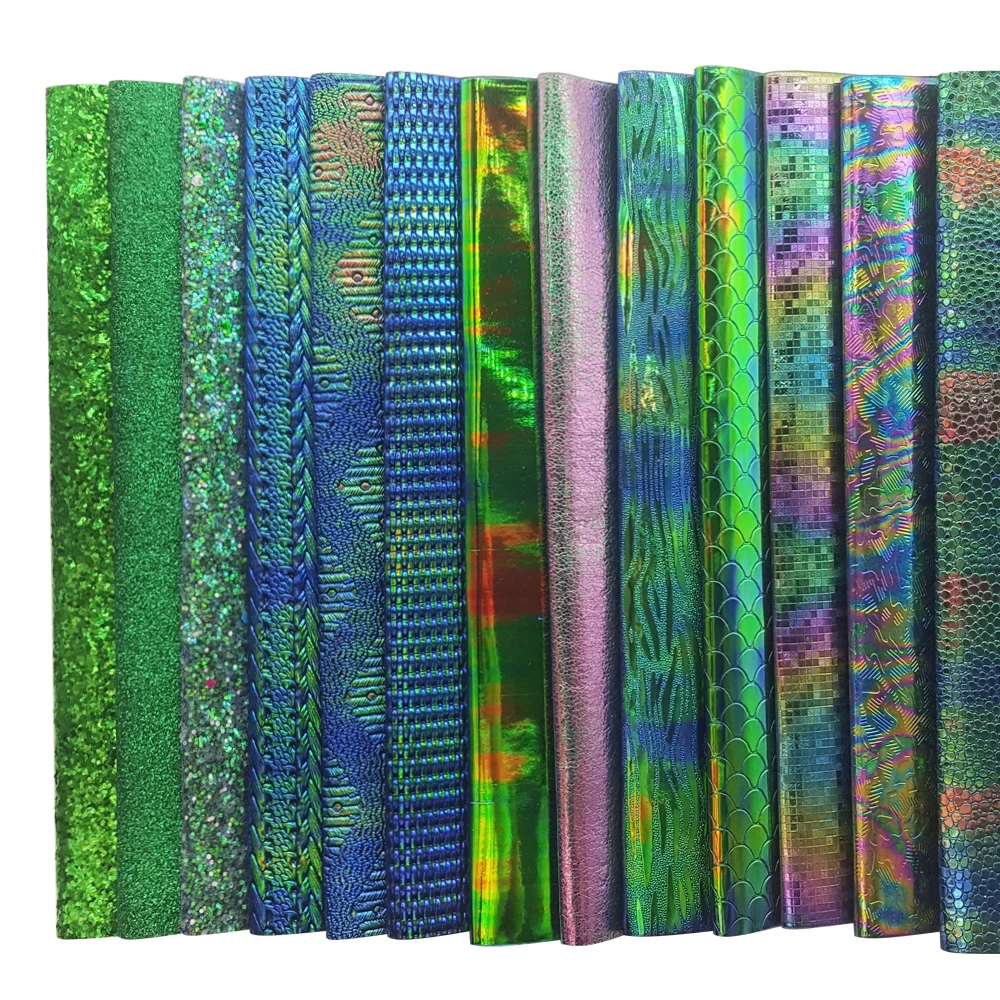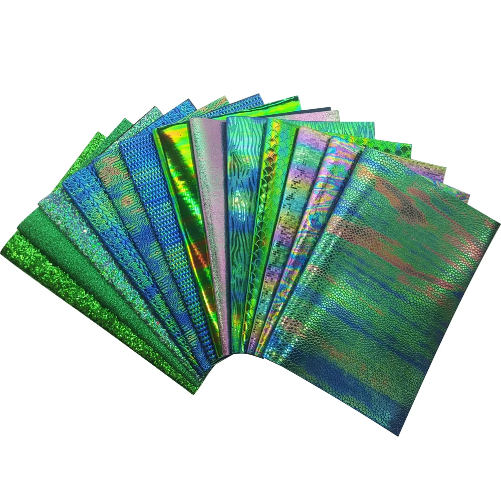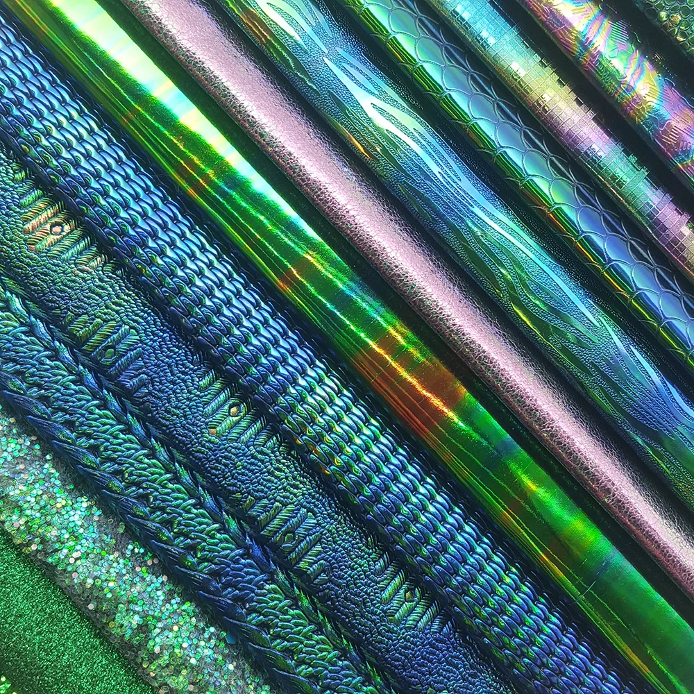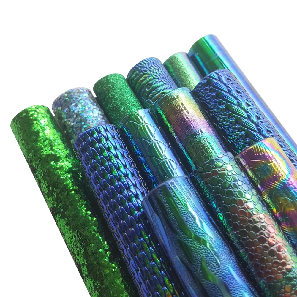 - Cuir synthétique vert avec de grosses paillettes pour un look glamour